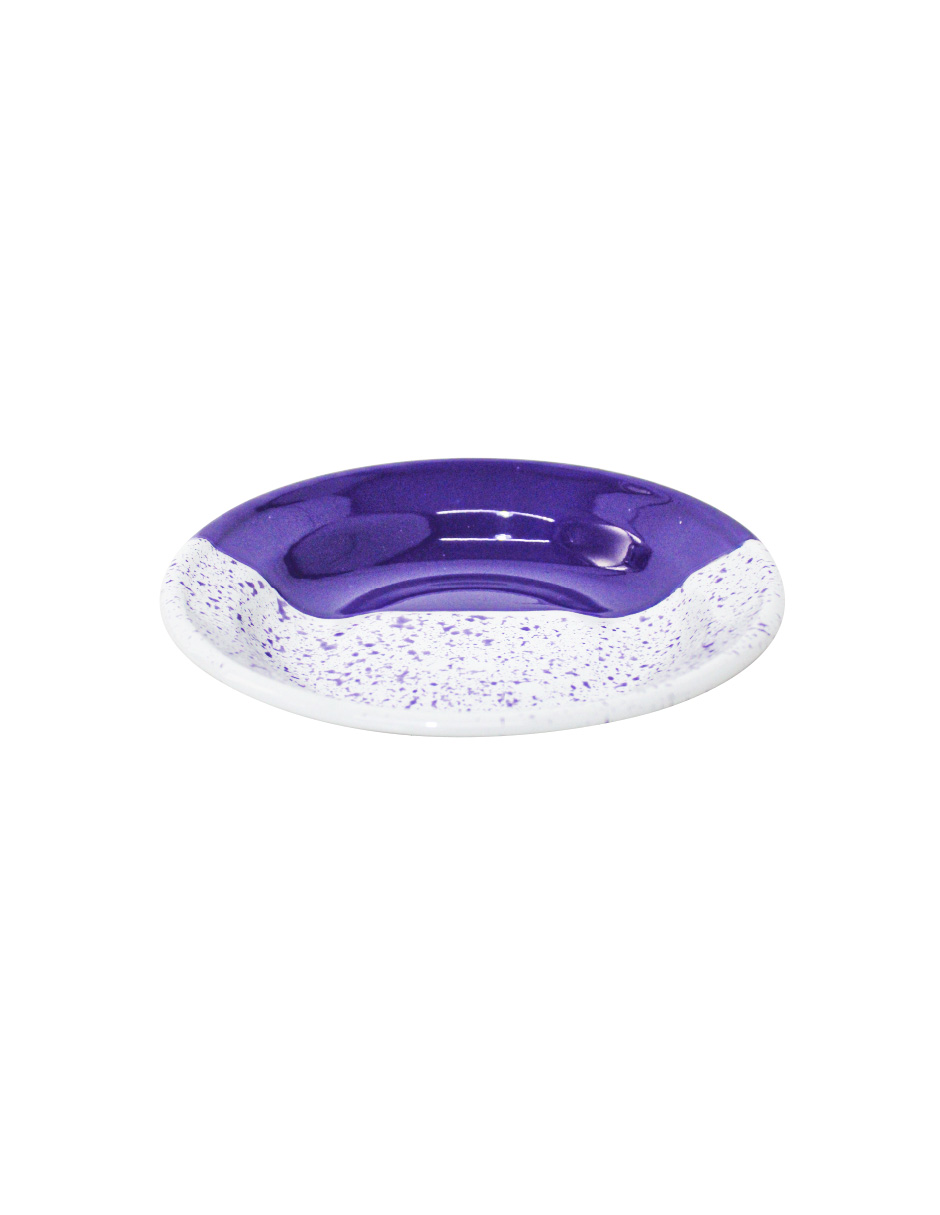 Sirve tu sopa con un toque moderno y alegre. Este plato sopero de peltre morado con blanco y puntos es perfecto para tu mesa. Su diseño te hará sentir la alegría y la diversión. Mide 20x20x3cm.