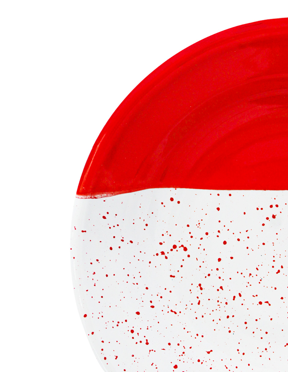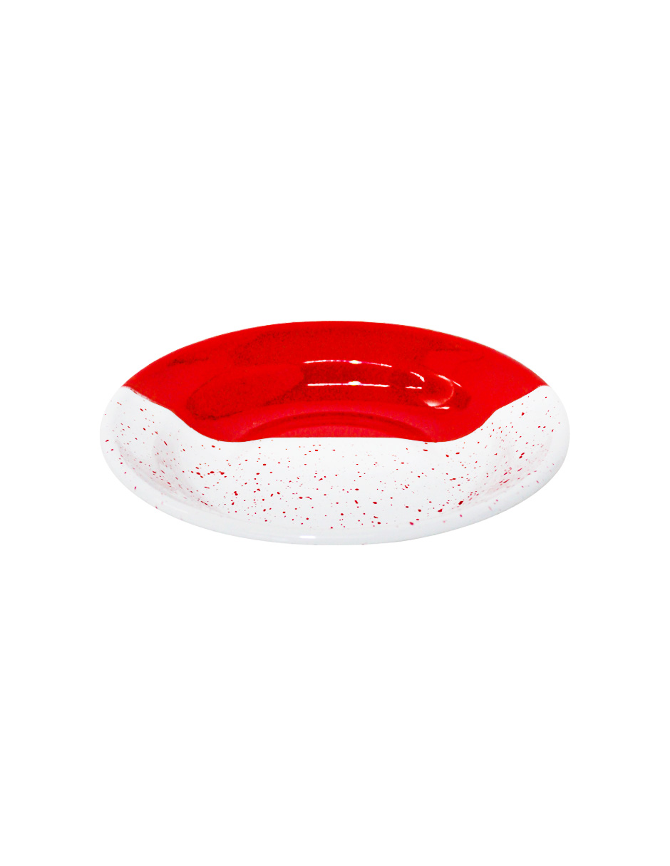 Sirve tu sopa con un toque moderno y alegre. Este plato sopero de peltre rojo con blanco y puntos es perfecto para tu mesa. Su diseño te hará sentir la alegría y la diversión. Mide 20x20x3cm.