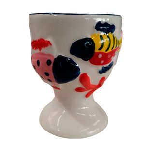 Porta huevo de porcelana con peces de 5x5x6.5cm