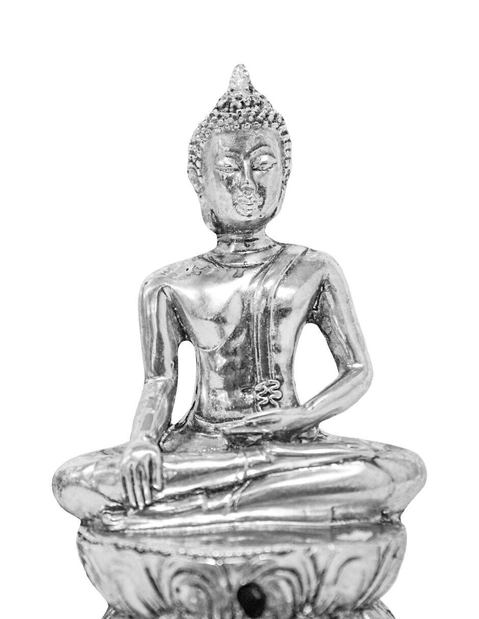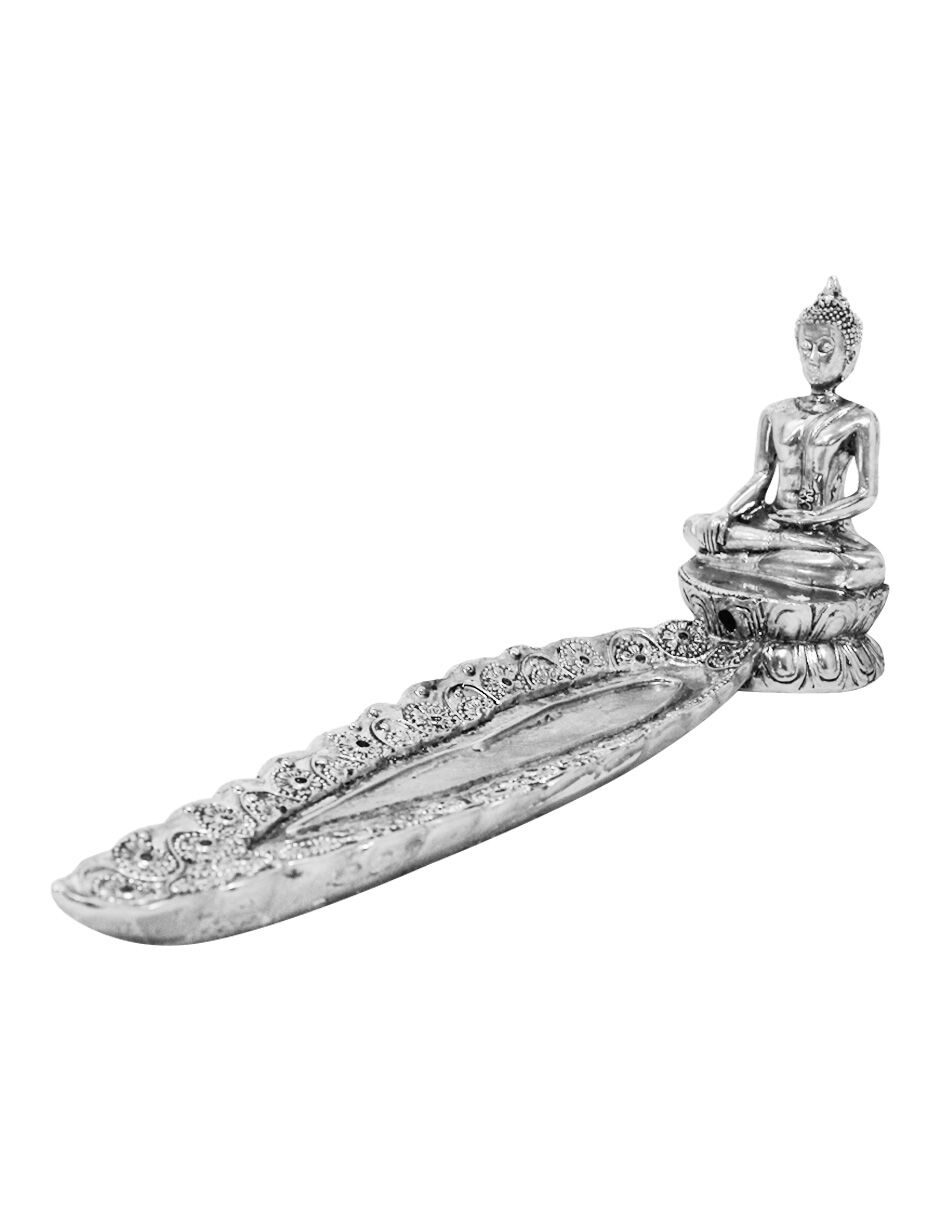 Inyecta paz, aroma y una distinción sublime a tu espacio con este hermoso Buda Porta Incienso Plateado de Poliresina. Esta pieza de arte no es solo un objeto decorativo; es una herramienta funcional para la meditación y la relajación, aportando un ambiente de armonía, enfoque y bienestar sensorial. La figura de Buda, con su elegante acabado en plateado, preside la base diseñada para recoger la ceniza del incienso.