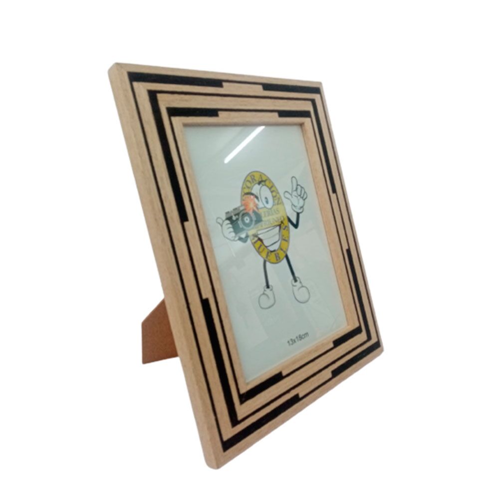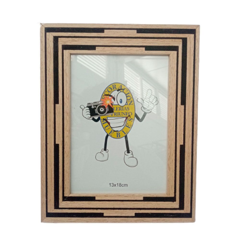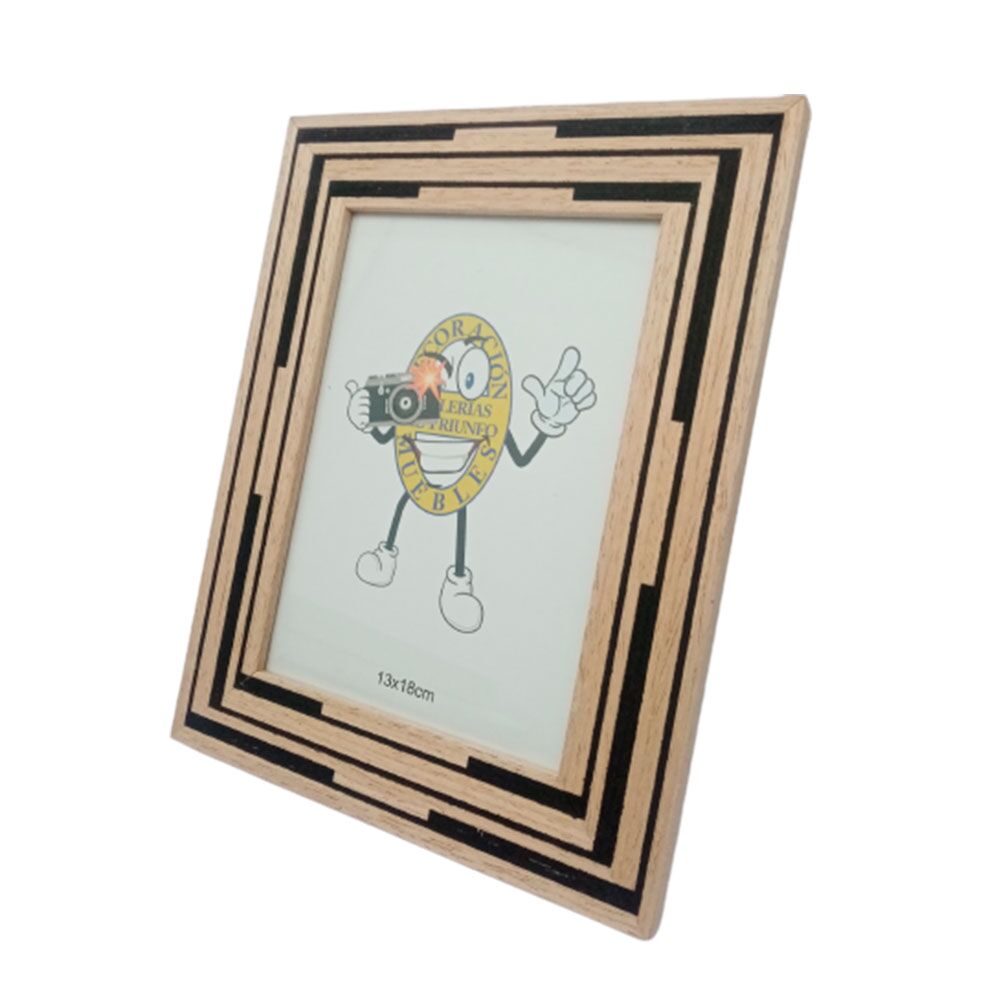 Portarretrato de madera natural con líneas negras de 13x18cm