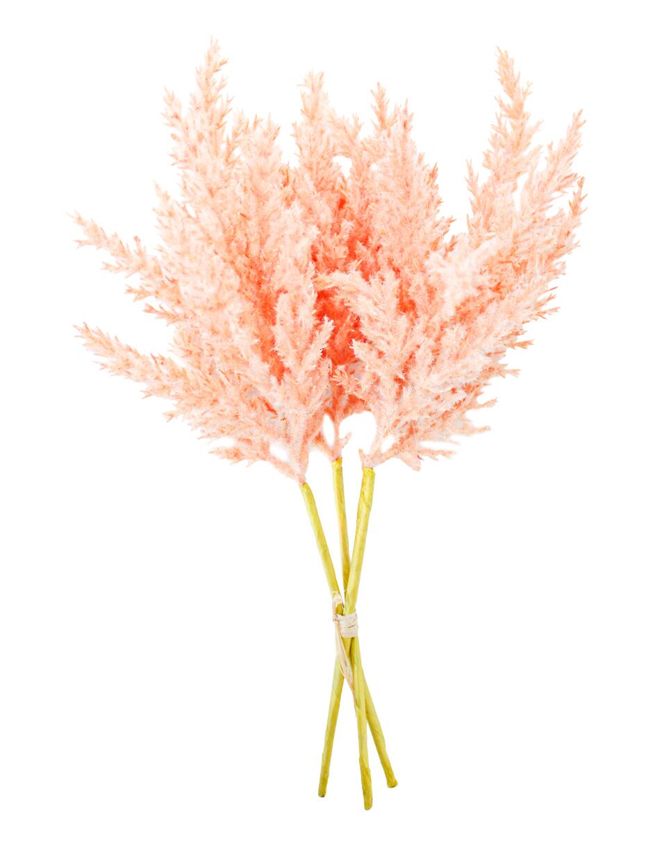 Inyecta la calma de la naturaleza y un toque boho moderno a tu espacio con este delicado ramo artificial de pampa. Su volumen suave y sus espigas en un cálido tono durazno crean una textura visualmente apacible y elegante, perfecta para decorar cualquier rincón con un aire fresco, sofisticado y de tendencia. Es la pieza ideal para infundir serenidad, distinción y un acento natural a jarrones o arreglos florales. Material: Artificial (Plástico/Textil). Medidas: 20 x 40 x 0.1 cm.