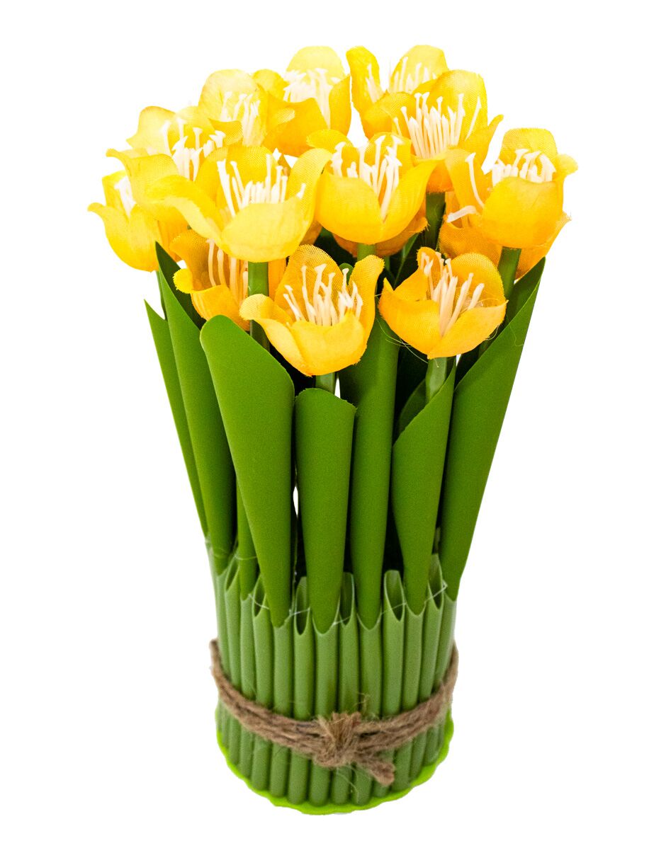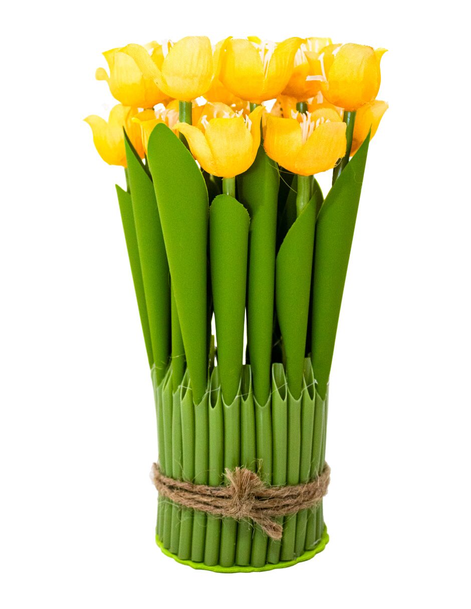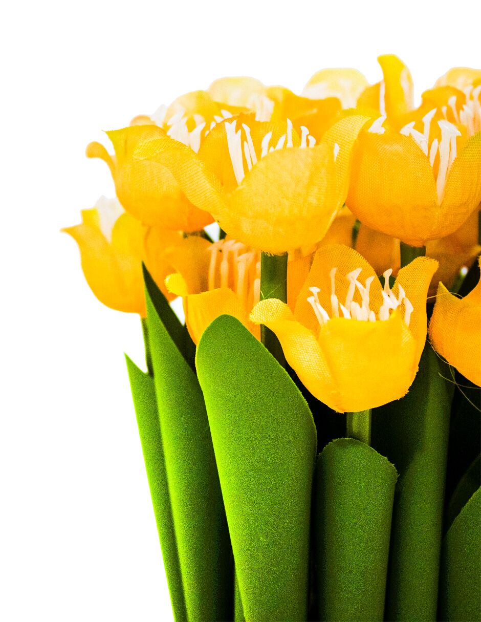 Ramo de tulipanes amarillos en base de 7.5×7.5x21cm