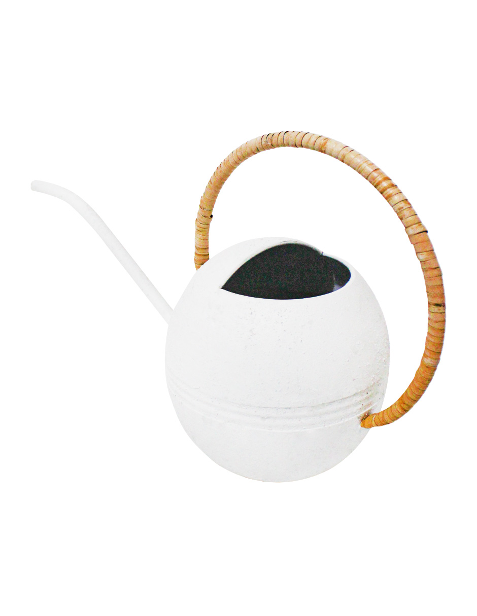 Dale un toque de elegancia a tu jardín. Esta regadera de metal blanco con agarradera tejida es perfecta para embellecer tus plantas. Su diseño te hará sentir la tranquilidad y la armonía. Mide 18.5×18.5×50.5cm.