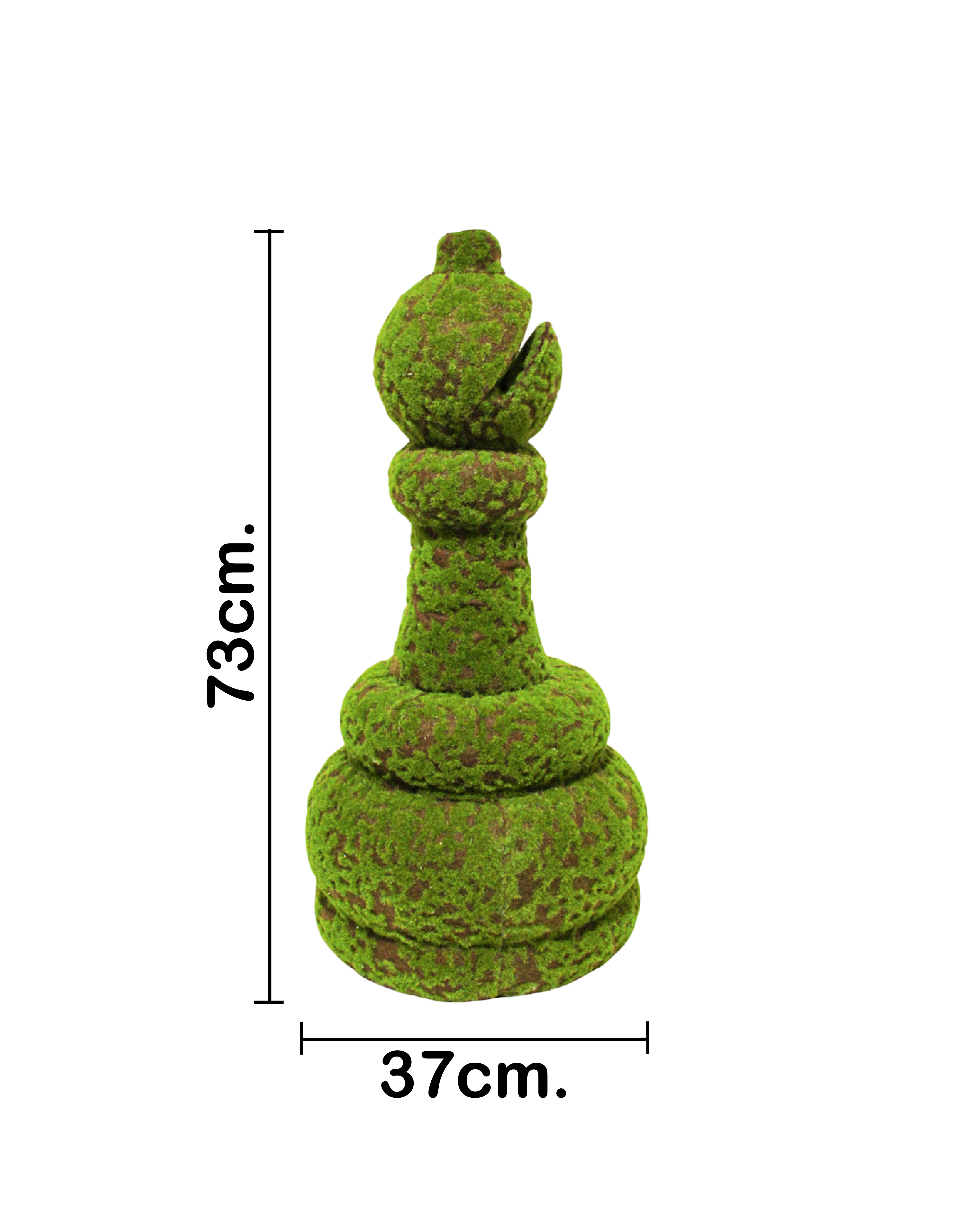 Dale un toque de poder y elegancia a tu jardín con esta imponente figura de reina de ajedrez. Su diseño forrado en tipo pasto te hará sentir la autoridad y la gracia en cada rincón. Materiales: fibras plásticas, tela. Medidas: 38x38x75 cm.