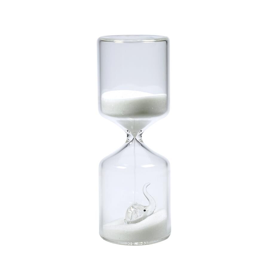 El diseño/simbolismo de esta pieza se centra en la medición precisa de 10 minutos dentro de su elegante estructura de Vidrio, destacando las figuras o la temática del Elefante de la Suerte. Por consiguiente, su forma simboliza la memoria, la longevidad, la buena fortuna y la firmeza del tiempo, sirviendo como un punto focal de distinción y enfoque.