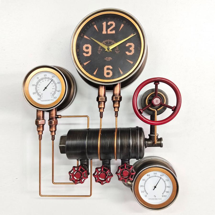 Dale a tu espacio un carácter fuerte y una funcionalidad vintage con este impactante reloj industrial. Su diseño robusto que integra un termómetro y un hidrómetro es el acento perfecto para inyectar distinción, utilidad y un aire loft o masculino a cualquier pared. Es una pieza que combina estilo y practicidad, convirtiéndose en un punto focal memorable y con mucha personalidad. Material: Metal y Plástico. Medidas: 46 x 13 x 58 cm.
