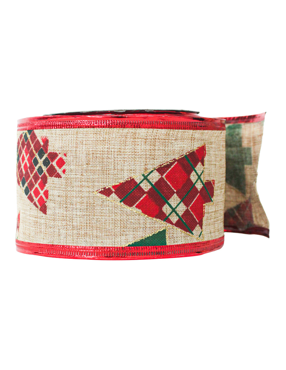 Rollo de listón en color beige con un elegante estampado de árboles. Es perfecto para añadir un toque de naturaleza y calidez a tus decoraciones y regalos.