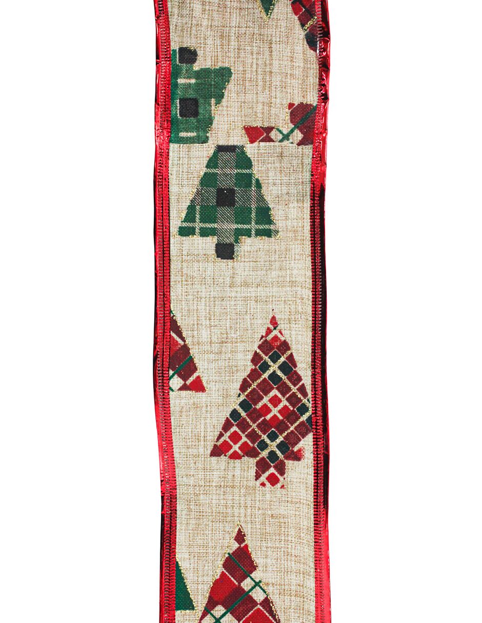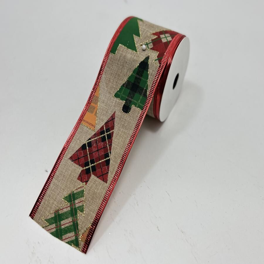 Rollo de listón en color beige con un elegante estampado de árboles. Es perfecto para añadir un toque de naturaleza y calidez a tus decoraciones y regalos.
