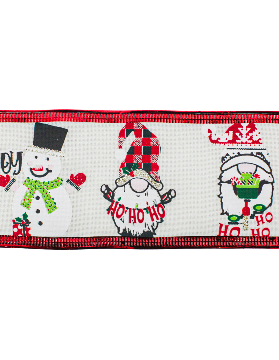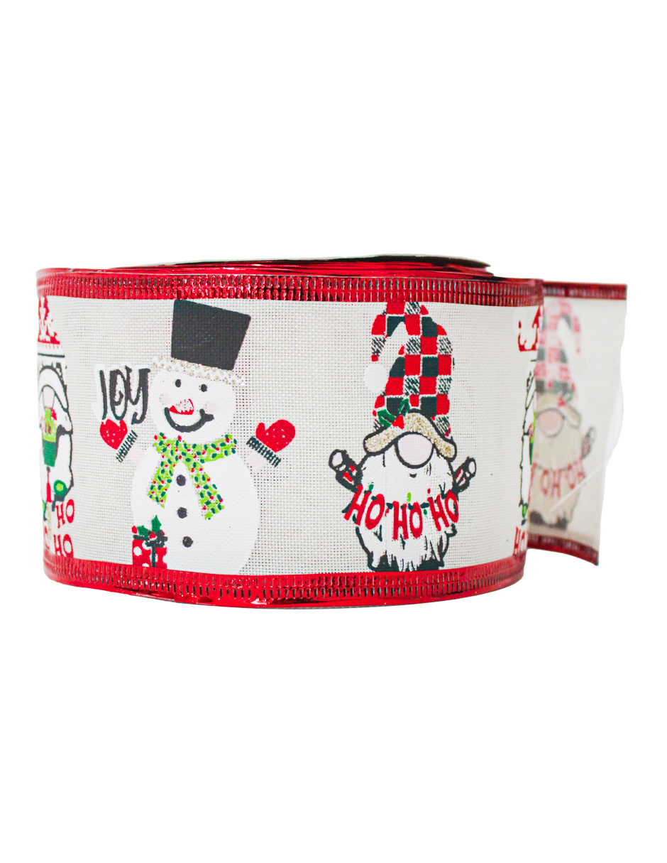 Un tierno rollo de listón estampado con un gnomo y un muñeco de nieve. Es el toque perfecto para envolturas de regalo y decoraciones navideñas, llenando tus creaciones de un estilo alegre y festivo. Material: tela. Medidas: 6.35 cm x 10 m.