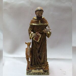 La figura de San Francisco de Asís es la pieza maestra para quien busca una estética devocional y armónica, combinando la rica tradición iconográfica con acabados de alta calidad y una presencia visual reconfortante en cualquier rincón de tu espacio. Este objeto ofrece una sofisticación espiritual incomparable, funcionando como un recordatorio de la paz y el respeto por la creación en tu hogar. Su sola presencia ayuda a elevar la sensación de tranquilidad y devoción de tu ambientación de manera inmediata. Lo logra mediante su diseño detallado que presenta al santo con su hábito marrón tradicional, portando las Sagradas Escrituras y acompañado por una paloma en su mano y un ciervo a sus pies, lo que evoca la humildad y el amor universal en la categoría de Liquidación.