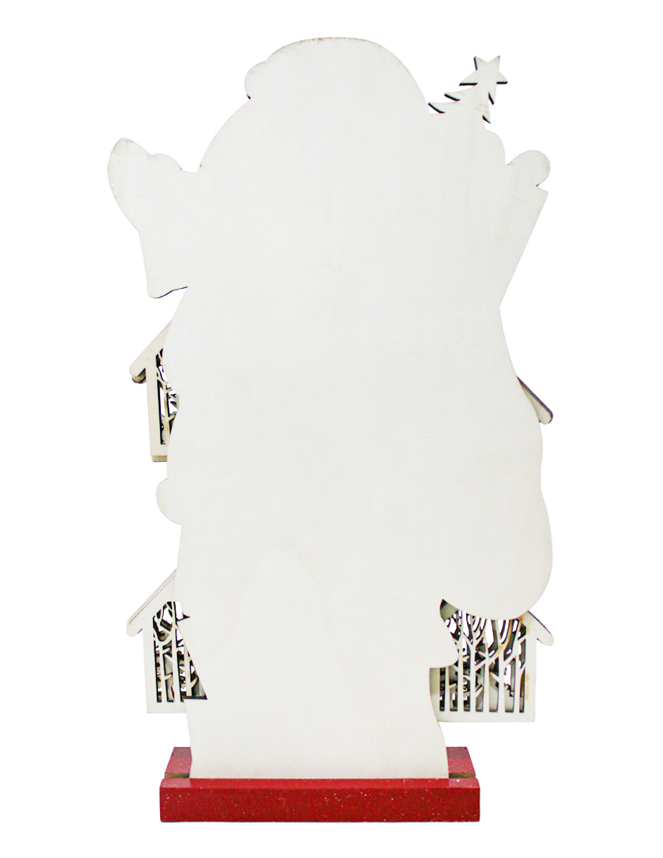 Un festivo Santa Claus de madera verde con 12 casas colgantes, con medidas de 6x23x43 cm. Ideal para añadir un toque de tradición y alegría a tu decoración.
