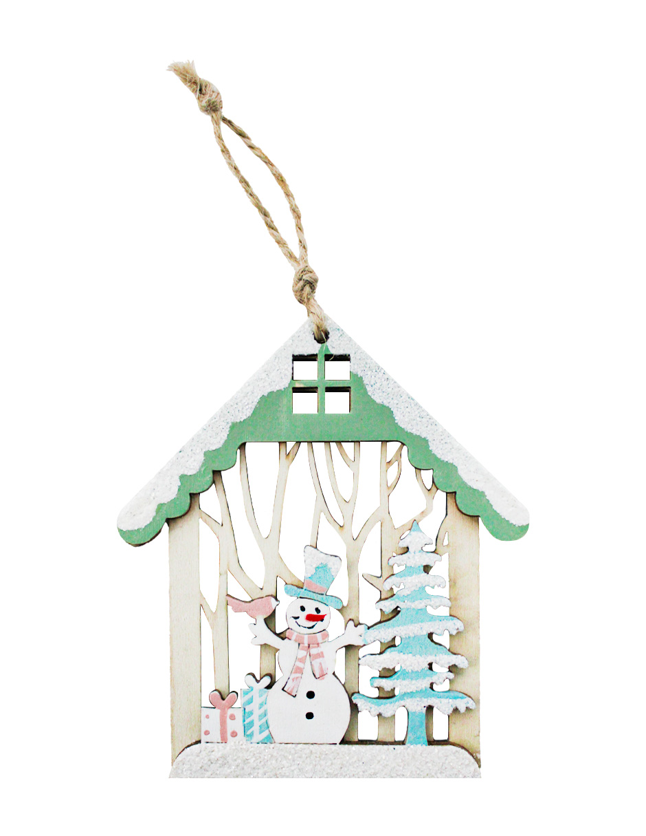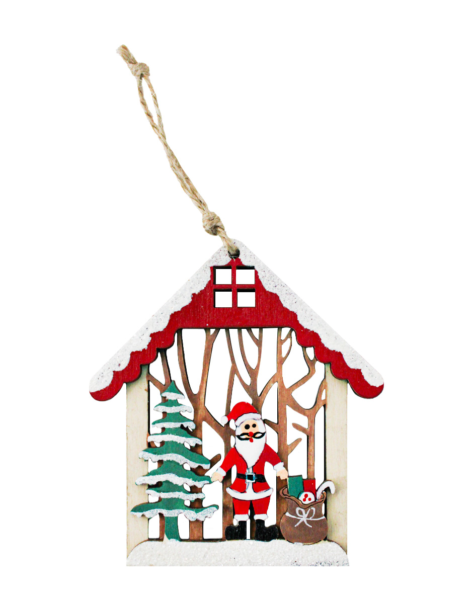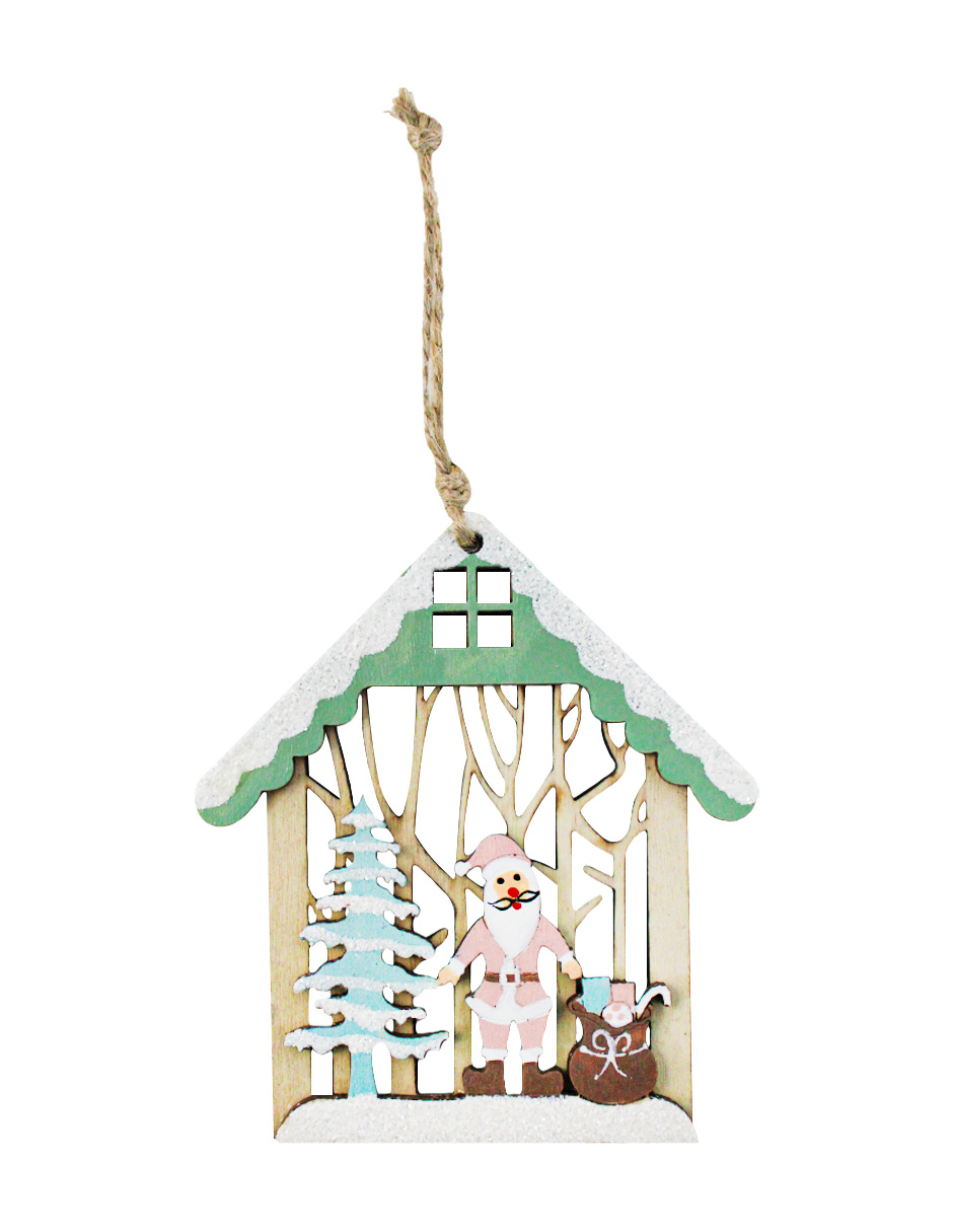 Santa Claus de Madera Verde con 12 Casas Colgantes