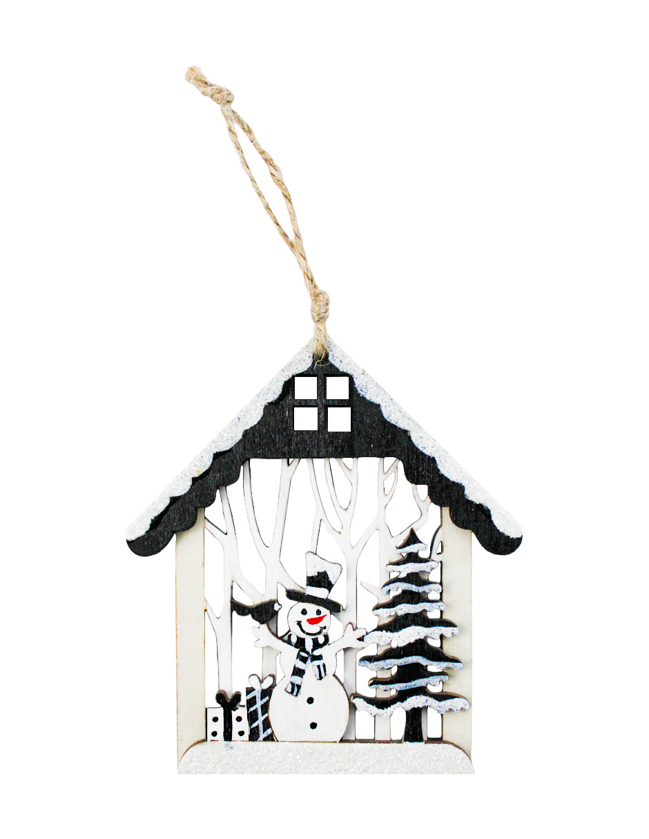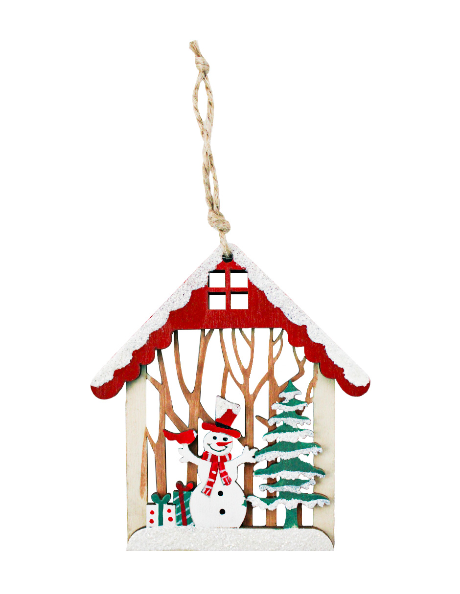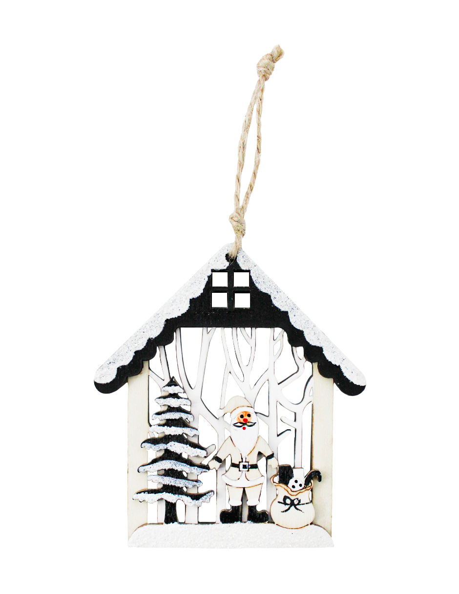 Santa Claus de Madera Verde con 12 Casas Colgantes
