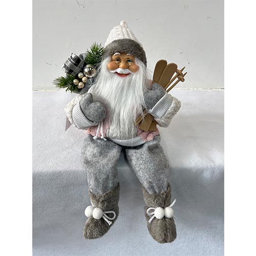 Santa con Traje Gris y Rosa con Costal y Esquís