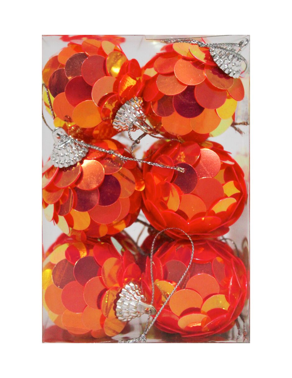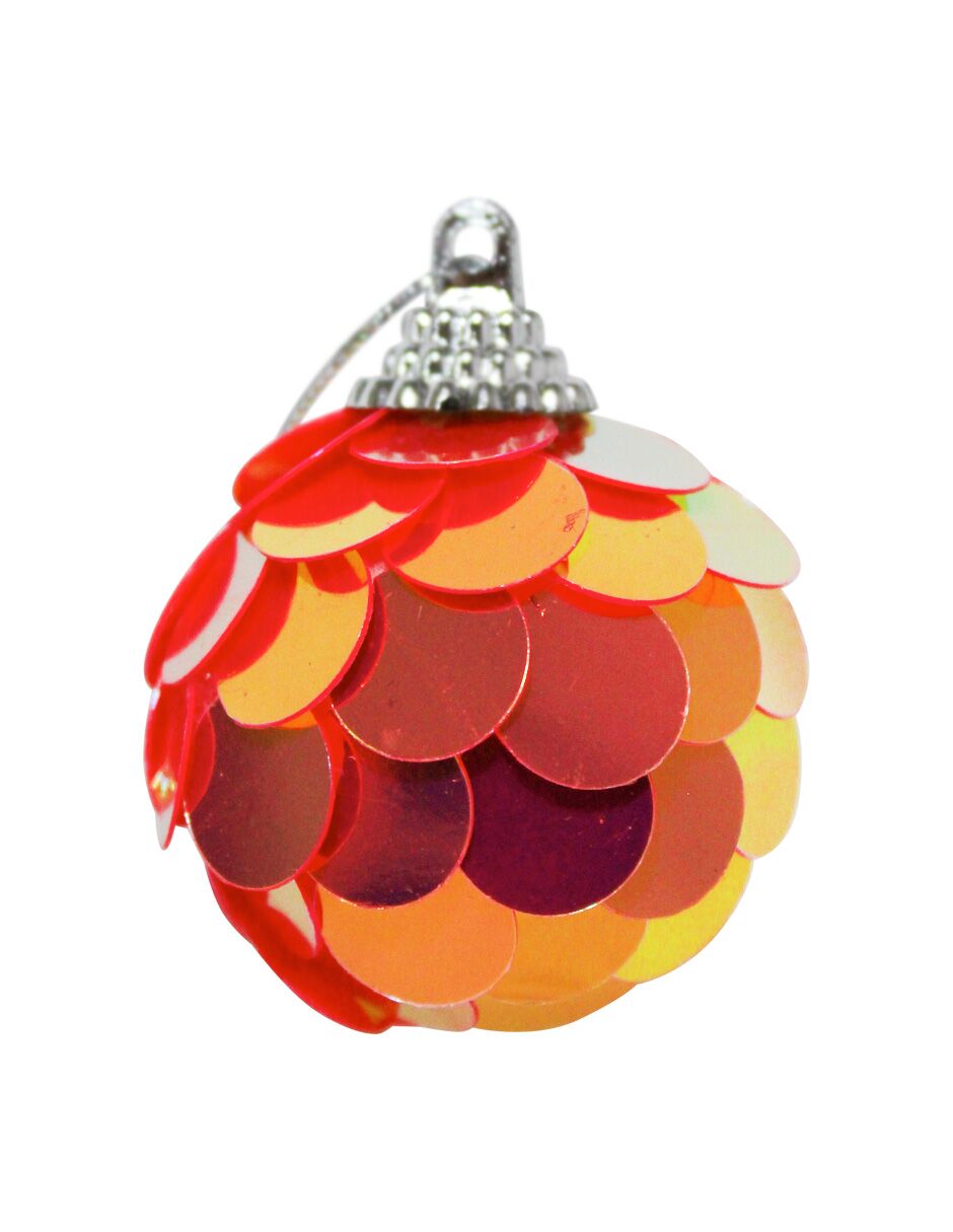 Caja con 12 esferas de lentejuela en color naranja con un acabado iridiscente. Aportan textura, brillo y un estilo novedoso.