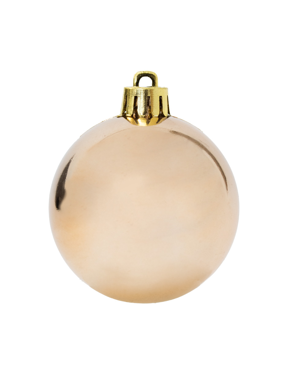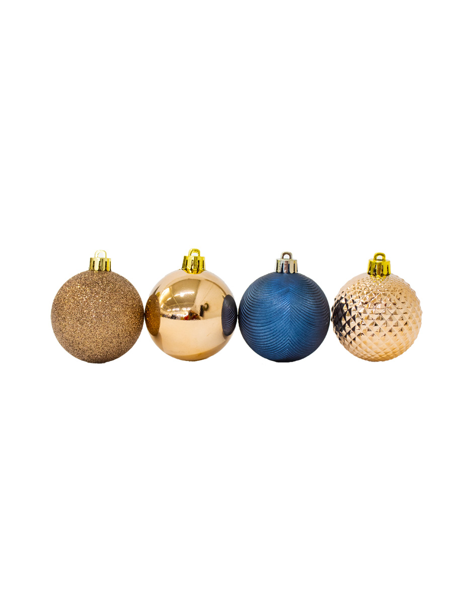 Set con 24 esferas de plástico en elegante combinación de azul marino y cobre. Medidas: 6 cm. Ideal para una decoración moderna, sofisticada y de gran contraste.