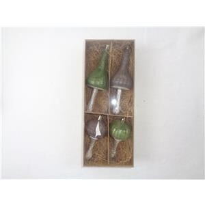 Set de 4 esferas con un original diseño de setas en colores verde y café. Son perfectas para añadir un toque de naturaleza y fantasía a tu árbol. Miden 10 y 15cm.