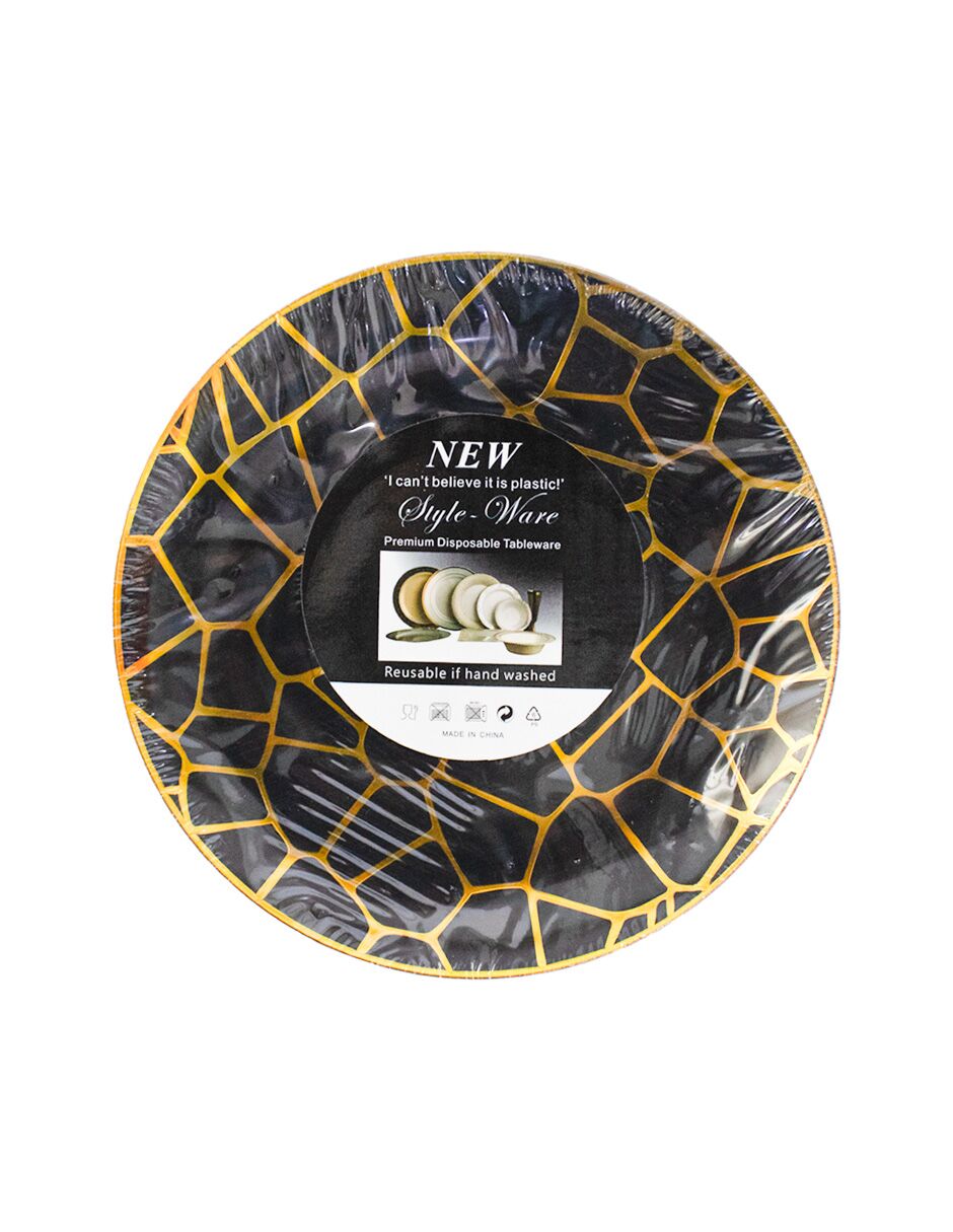 Set de 6 Platos Negro Orilla Dorada (Chico)