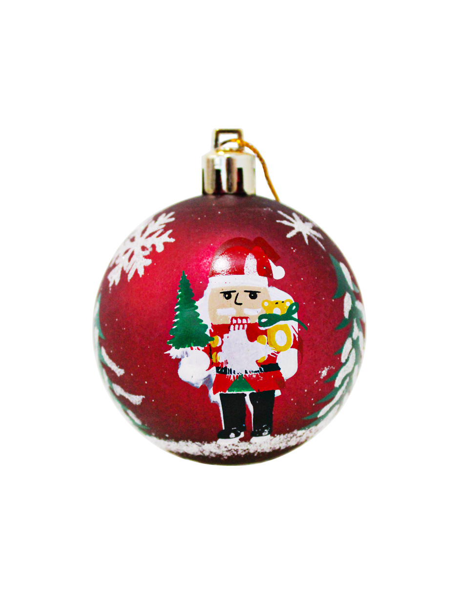 Set de 8 esferas que captura el espíritu alegre y la magia clásica de la Navidad con el tradicional diseño de Santas. El sofisticado color vino mate de la esfera le otorga un toque de elegancia profunda y calidez a tu decoración. Fabricadas en plástico, son livianas, resistentes y perfectas para un ambiente seguro. Medidas: 6 cm (diámetro).