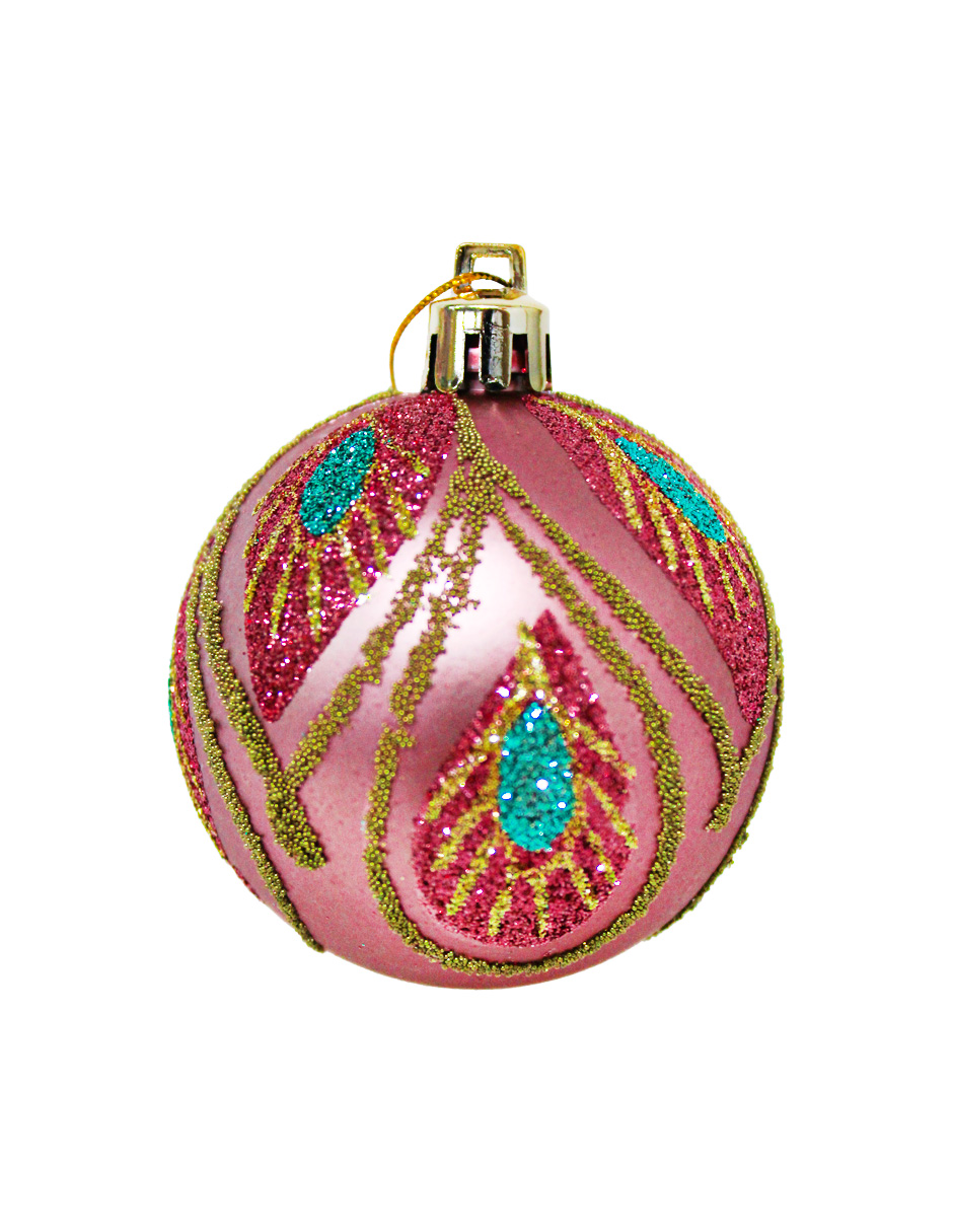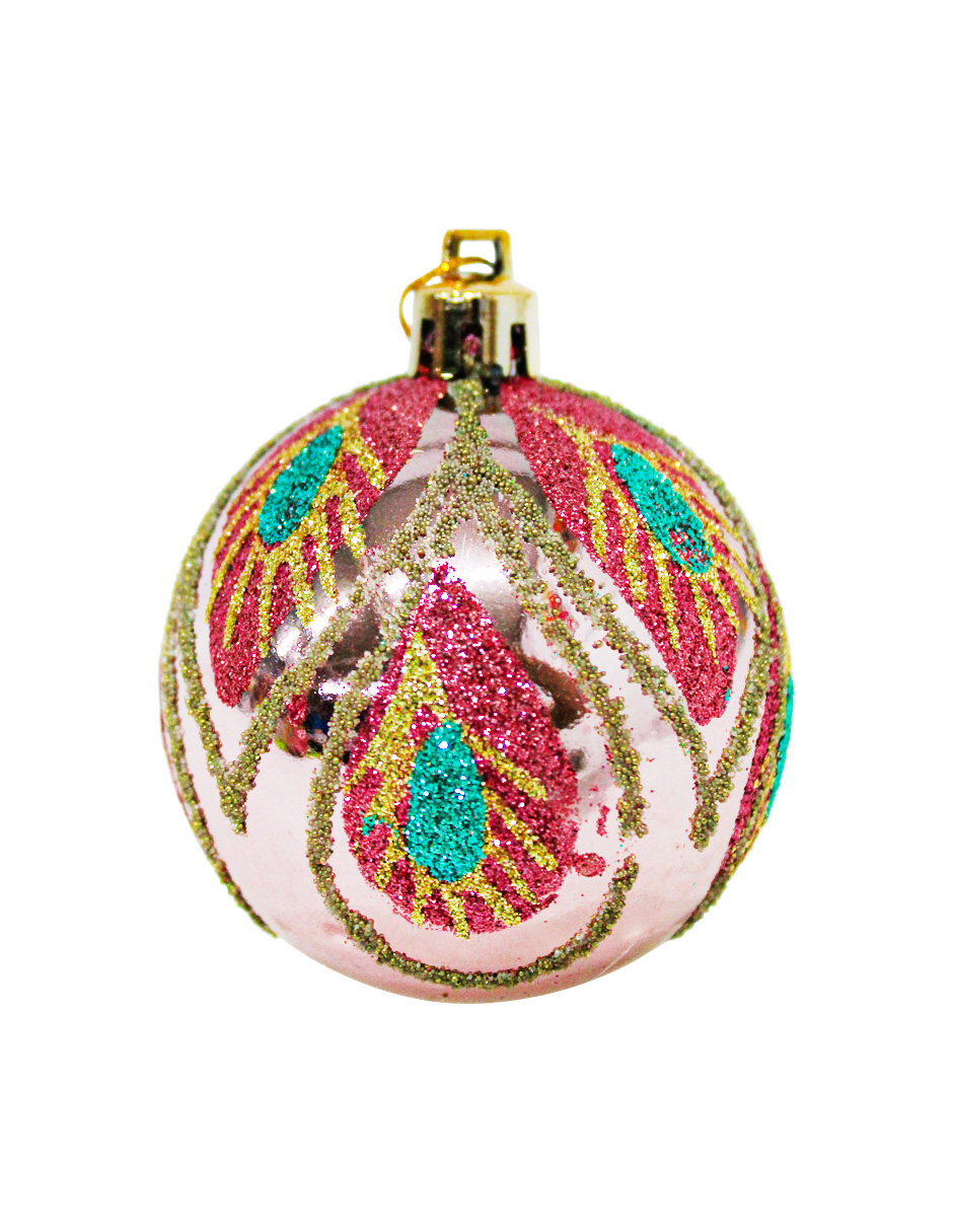 Set de 8 esferas que inyecta un lujo moderno y exótico a tu decoración. El delicado color rosa se combina con un sofisticado diseño de plumas de pavo real, creando una pieza que irradia elegancia chic y vanguardia. Fabricadas en plástico, son livianas, resistentes y seguras. Medidas: 6 cm (diámetro).