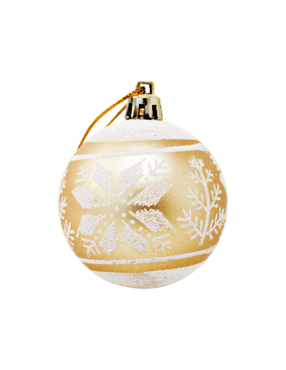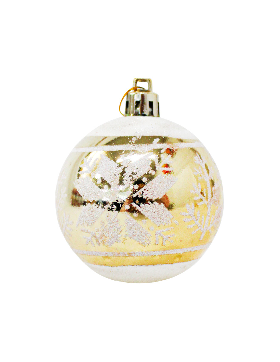 Set de 8 esferas que combina la tradición floral navideña con un lujo deslumbrante. El diseño de Nochebuenas añade el toque clásico y festivo, mientras que el brillante color dorado de la esfera irradia opulencia y sofisticación. Fabricadas en plástico, son seguras, livianas y resistentes. Medidas: 6 cm (diámetro).