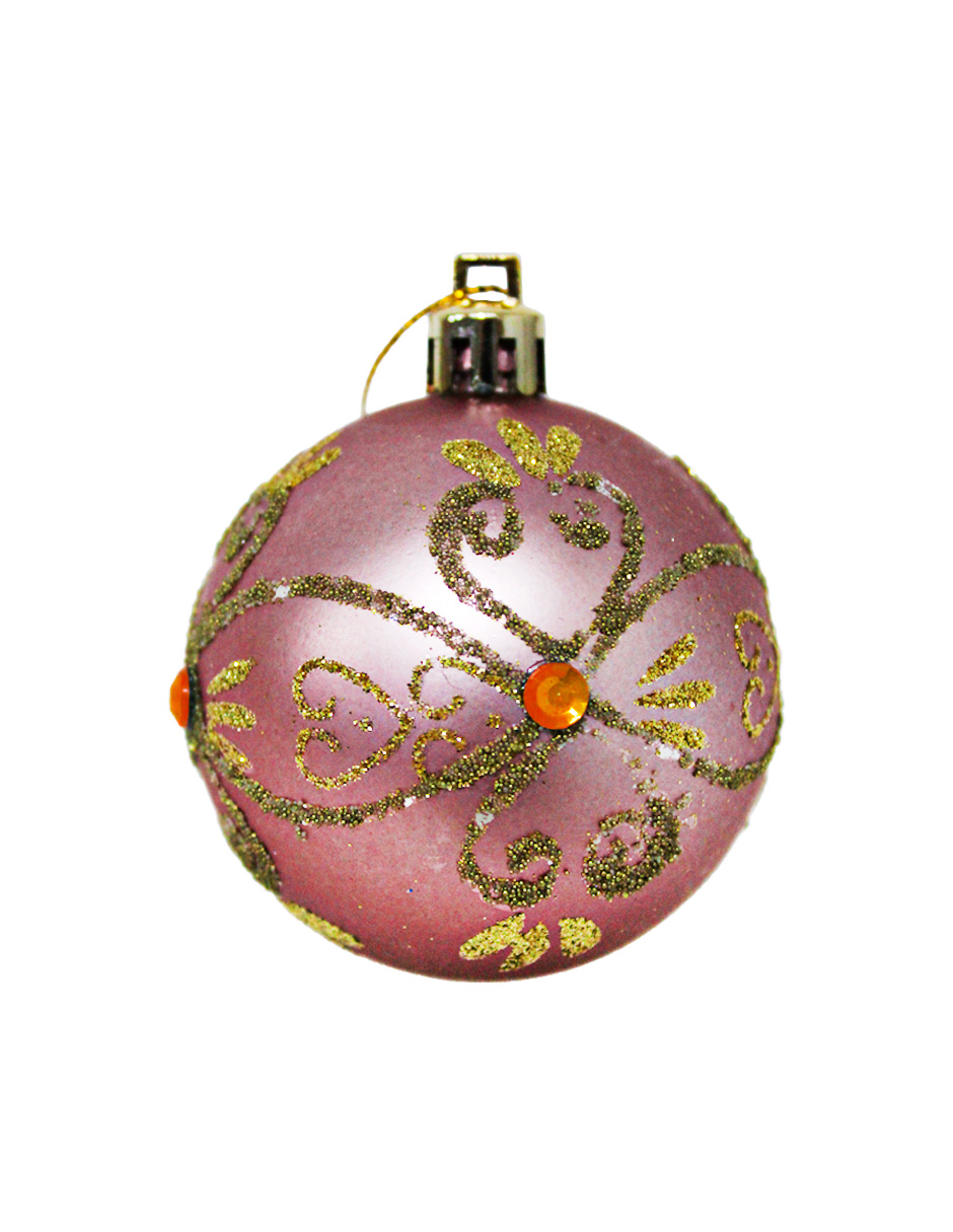 Set de 8 esferas que combina la delicadeza del color rosa con el lujo festivo de la diamantina. El sutil brillo dorado crea un efecto deslumbrante y elegante, inyectando un toque dulce y sofisticado a tu decoración navideña. Fabricadas en plástico, son livianas, resistentes y seguras. Medidas: 6 cm (diámetro).