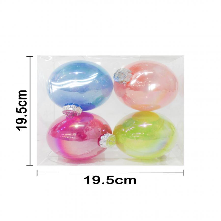 Set de esferas de plástico en colores surtidos con acabado iridiscente. Ideal para una decoración novedosa, brillante y versátil.