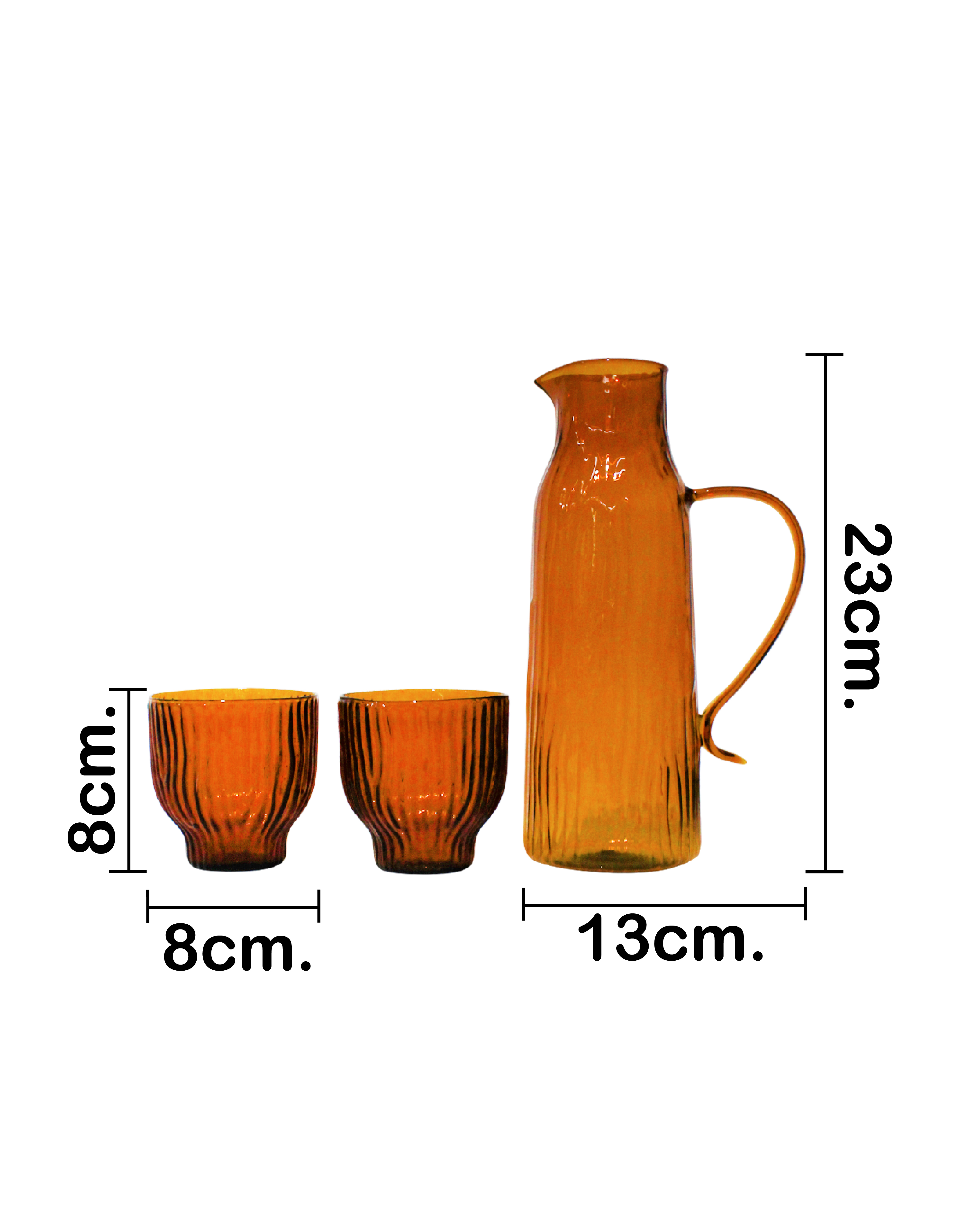Set de Jarra con 2 Vasos Ranurado Ámbar