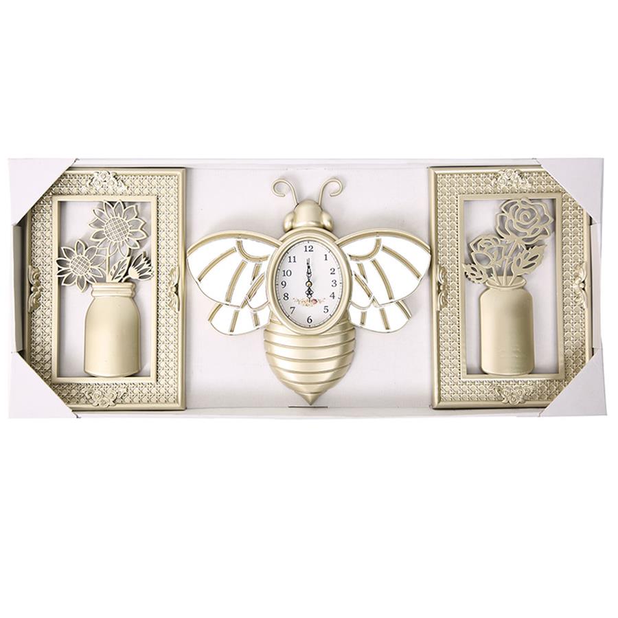 El diseño/simbolismo de esta pieza se centra en la combinación de un Reloj funcional con la figura de una Abeja resaltada con un acabado Dorado (símbolo de riqueza y prosperidad) y elementos Florales. Por consiguiente, el set simboliza la armonía entre el trabajo (la abeja) y la recompensa (el dorado), y el disfrute de la belleza natural, sirviendo como un punto focal de distinción y encanto.