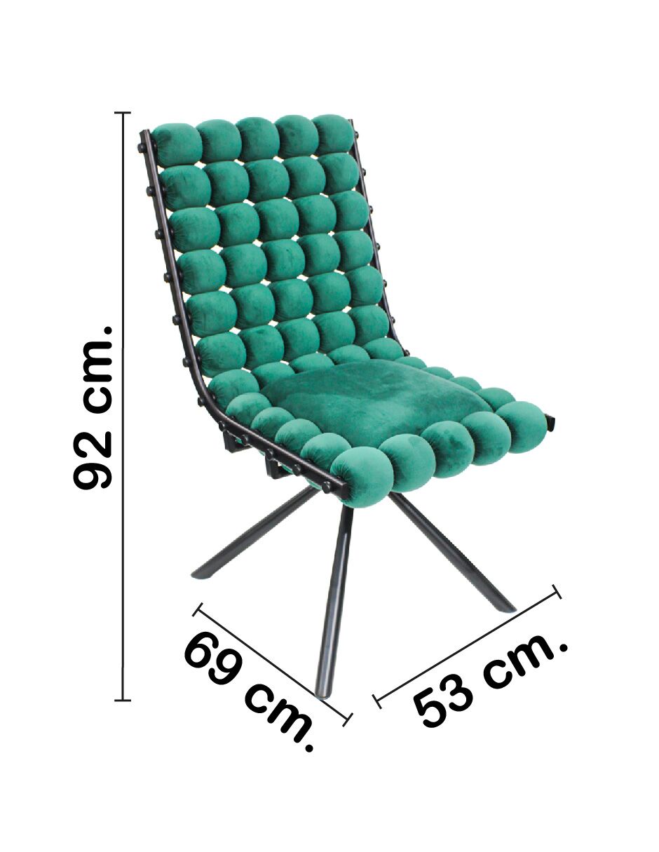 Materiales: Terciopelo, Estructura Interna y Base de Metal Araña. Descubre más piezas que transformarán tu energía y ambiente; te invitamos a visitar la categoría Sillas para Sala.