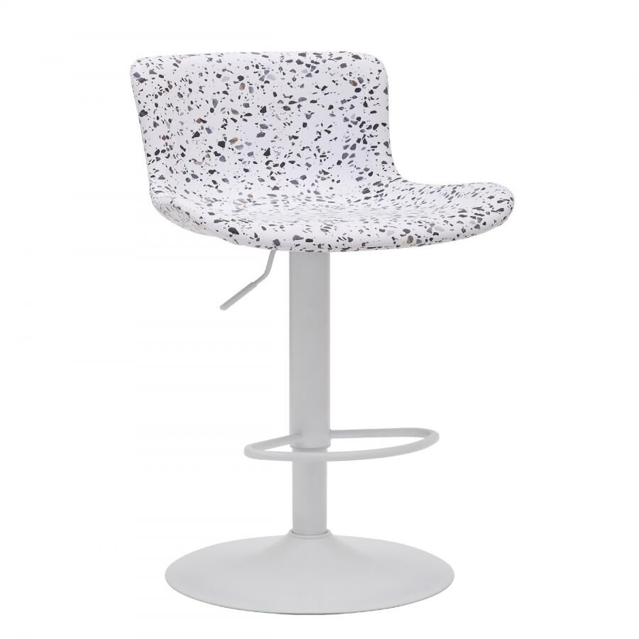 Un banco de barra que combina diseño y tendencia. Su asiento de color blanco con un moderno acabado terrazo lo convierte en una pieza única. Con unas medidas de 47x50x82-103cm, su altura ajustable y su estilo vanguardista son ideales para quienes buscan un toque de personalidad en su hogar.