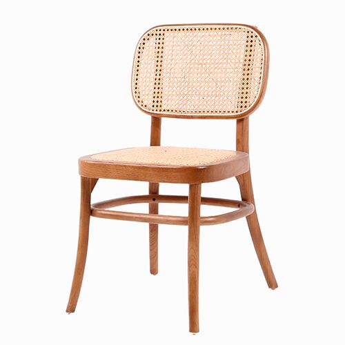 La calidez de la madera se fusiona con la ligereza del ratán. Esta silla de madera café con respaldo y asiento de ratán es la pieza perfecta para un comedor que busca un estilo rústico y acogedor. Con sus medidas de 45x41x83cm, es una inversión en diseño y confort.
