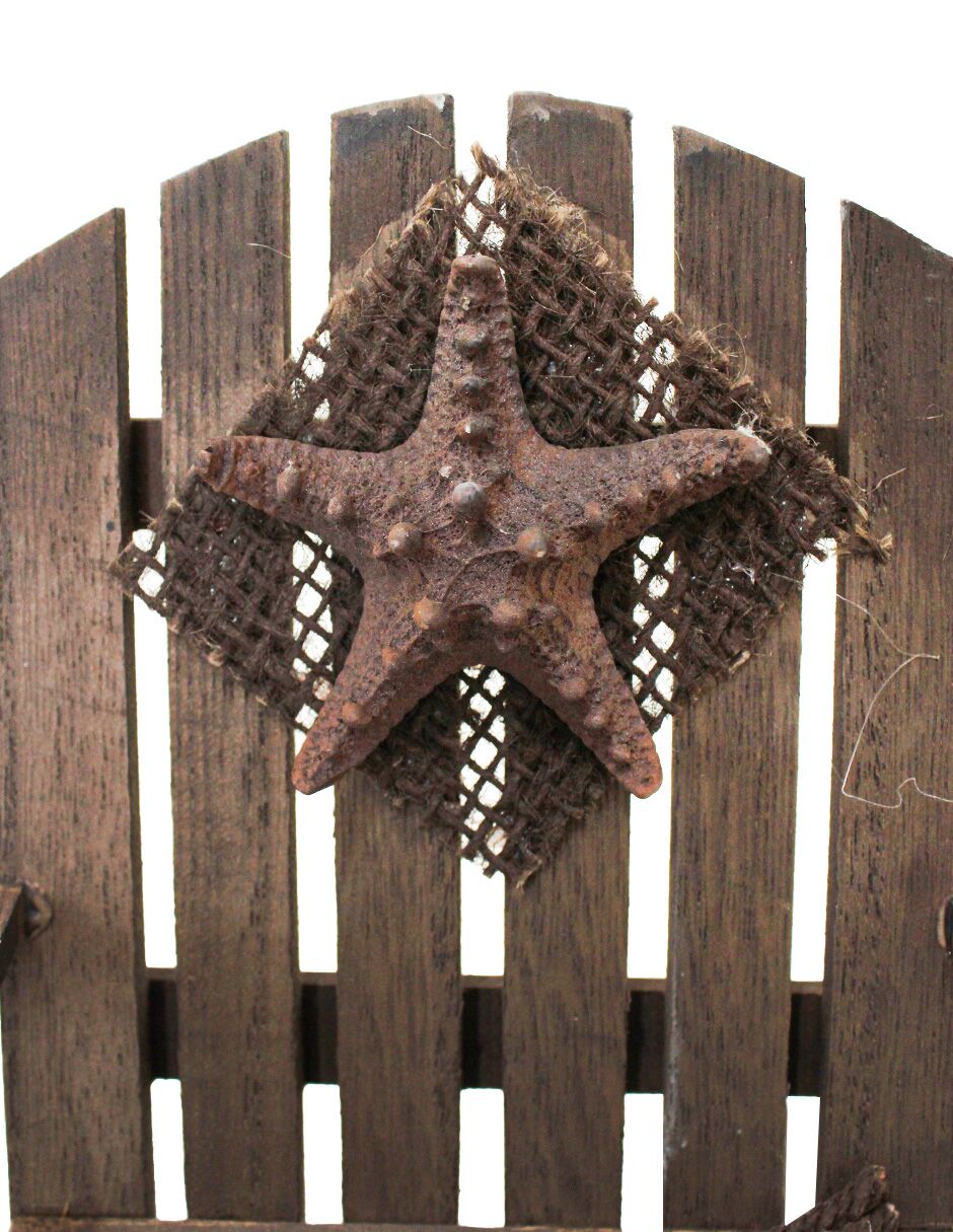 Silla de playa mini de madera café con respaldo estrella de mar de 17x18x18cm