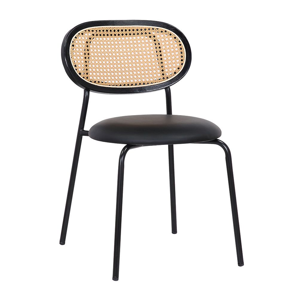 Silla de metal con asiento de polipiel negro con respaldo de rattan de 47.5×52.5x77cm