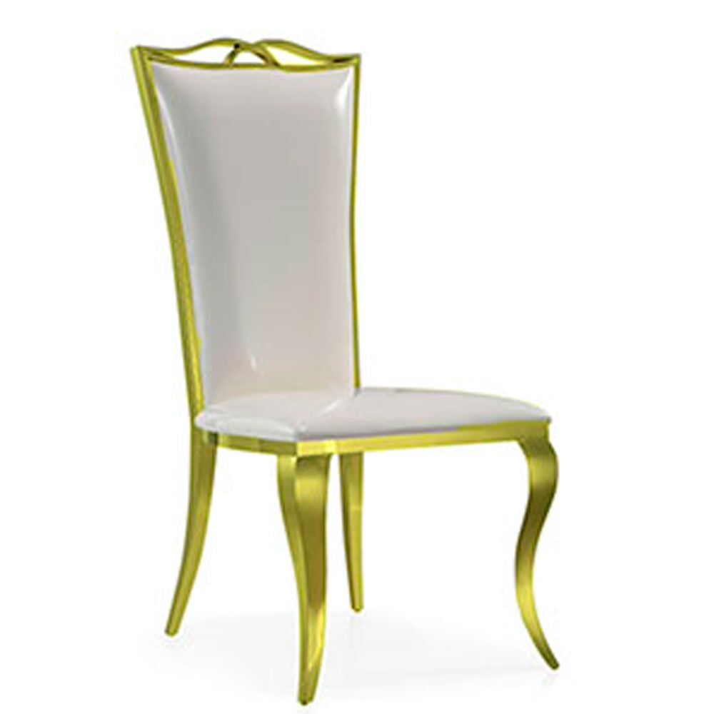 Transforma tu evento con un toque de arte y realeza. La Silla Trono Curvada en Oro y Blanco es una pieza que destaca por su opulencia y su diseño intrincado. Su elegante estructura de metal dorado, con un respaldo alto y forrado en brillante charol blanco, se realza con un exquisito diseño curvo en la parte superior, que le otorga una belleza artística y majestuosa. Las patas de estilo cabriole añaden un detalle clásico y sofisticado. Con una altura de 110cm, su presencia es imponente. Es la elección ideal para la mesa de los novios, eventos de gala o cualquier celebración que exija un mobiliario con un estilo inigualable.