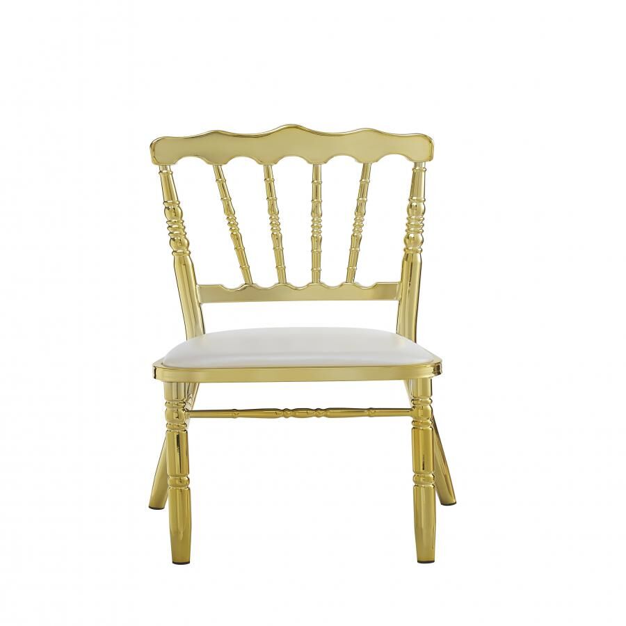 También transmite una vitalidad única a través de su acabado dorado brillante que captura la esencia del glamour y la exclusividad. Su apariencia refinada, resaltada por el contraste con el asiento acojinado en color blanco inmaculado, invita a la admiración constante de sus invitados. Funciona perfectamente en cualquier circunstancia de alto impacto, actuando como el estándar de oro en el diseño de eventos sociales. De hecho, este elemento permite que tu configuración de mobiliario resalte con mucha fuerza hoy mismo de forma imponente. Además, la estética de la silla tiffany dorado con asiento acojinado simboliza el prestigio y el refinamiento en el servicio.