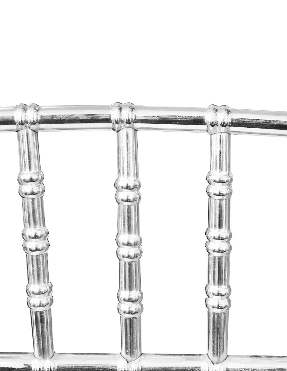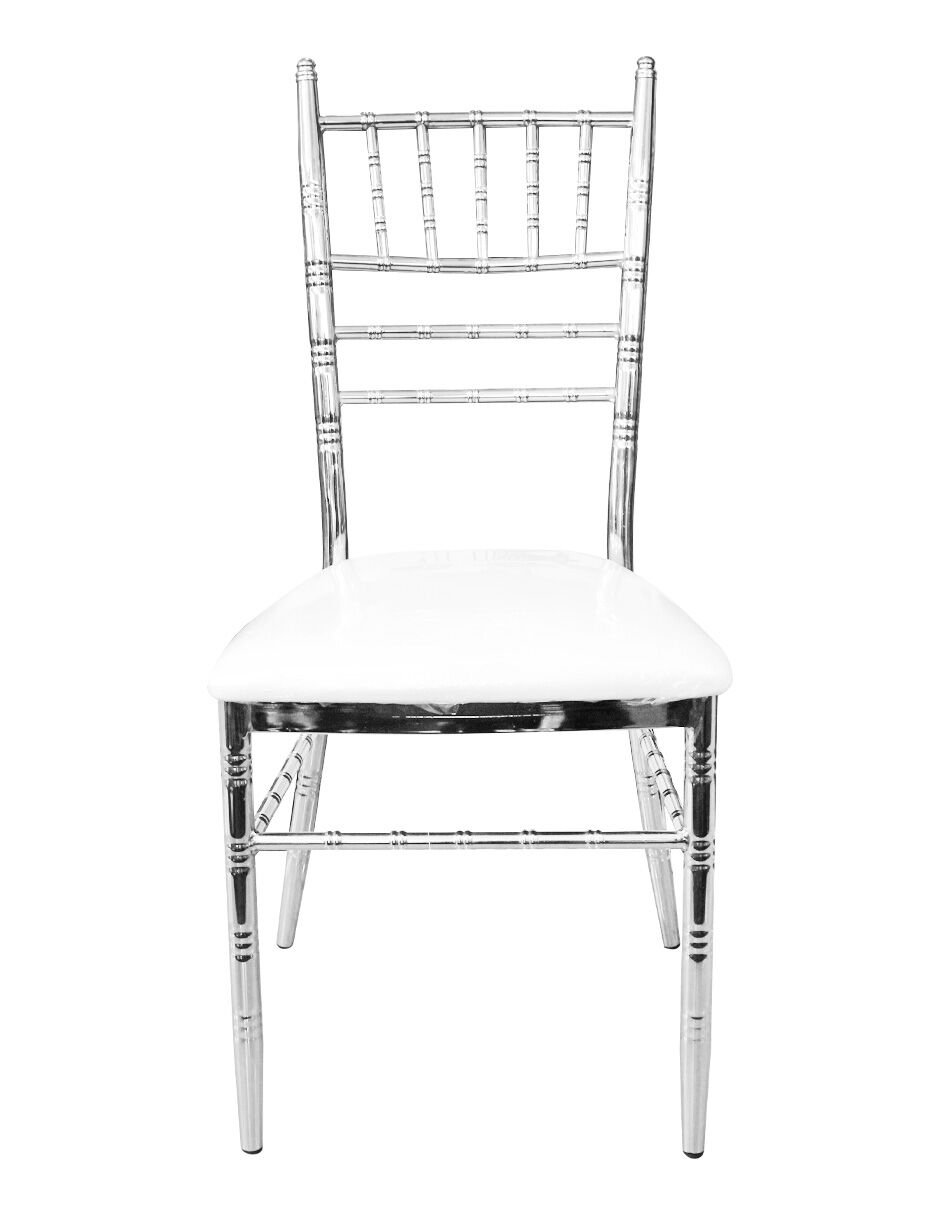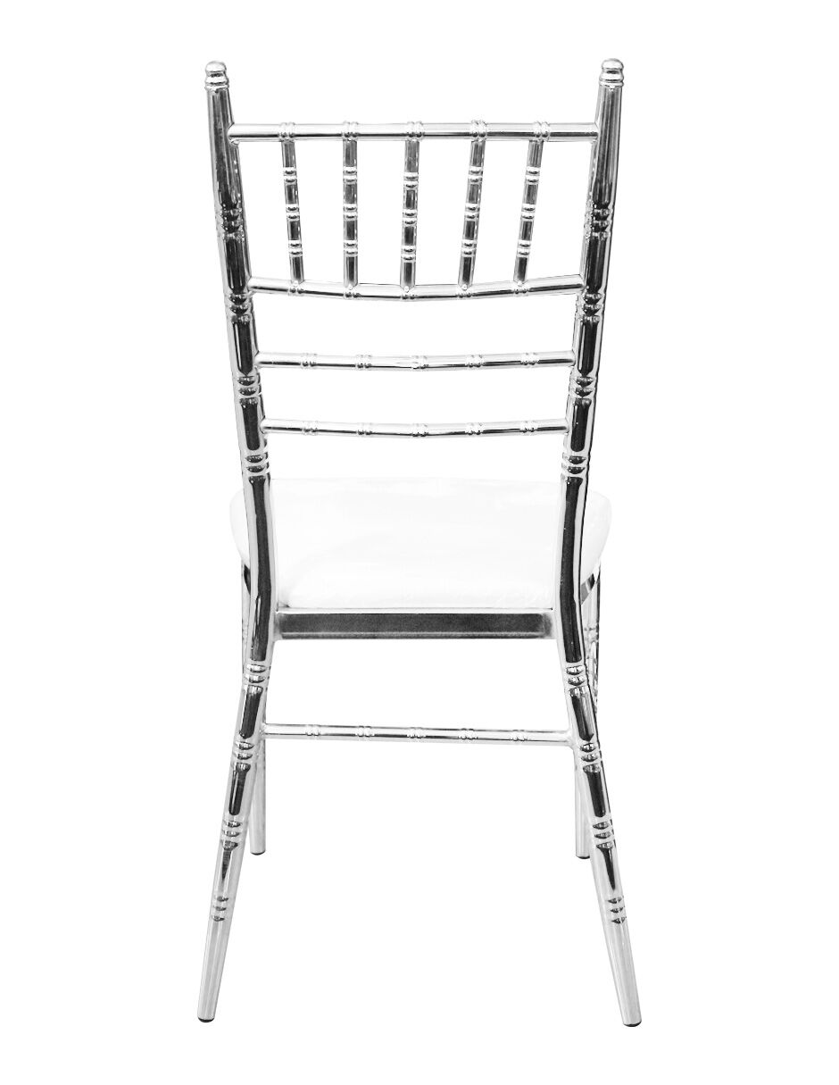 Redefine la elegancia de tu evento con un toque de modernidad y glamour. La Silla Tifanny Plateada personifica la elegancia. Con su imponente estructura de metal plateado brillante, esta silla redefine el concepto de glamour en cualquier celebración. Su diseño atemporal, con unas medidas de 50x40x93x44cm, se complementa a la perfección con el asiento acojinado en un blanco impecable, ofreciendo un confort excepcional. Es una pieza tan resistente como bella, capaz de soportar hasta 120kg.