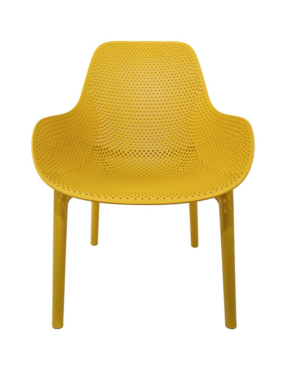 Esta silla de plástico amarillo destaca por su diseño atrevido y contemporáneo. Su diseño perforado no solo le da una estética vanguardista sino que también favorece la circulación de aire, haciéndola increíblemente cómoda y fresca. Fabricada con materiales de alta resistencia, es una pieza funcional y versátil que se adapta perfectamente tanto a interiores como a exteriores, creando un ambiente de estilo y personalidad.