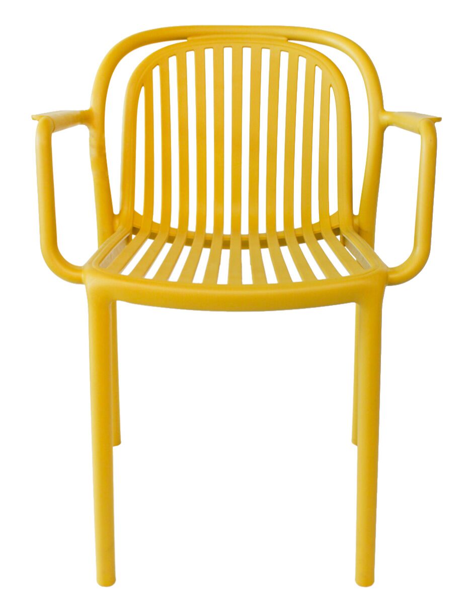 Invoca la Geometría Lineal y la Vitalidad Radiante con nuestra Silla Diseño Tiras Amarillo (Plástico, con Descansabrazos). Este es un objeto de profunda funcionalidad y estilo alegre. El diseño de Tiras aporta un valor atemporal de ventilación y frescura, mientras que el material de Plástico de alta resistencia la reviste de durabilidad contra la intemperie. Su diseño es un placer visual, una invitación para crear un espacio lleno de luminosidad y buen humor, promoviendo la calma y el bienestar al instante.