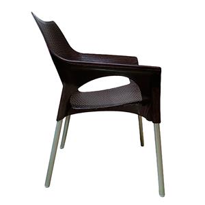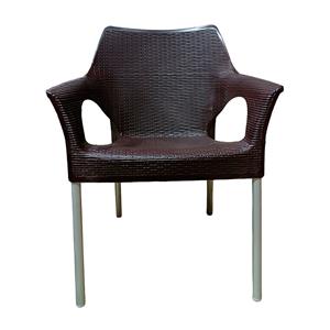 Silla de plástico imitación tejido café con patas de metal de 56x62x85