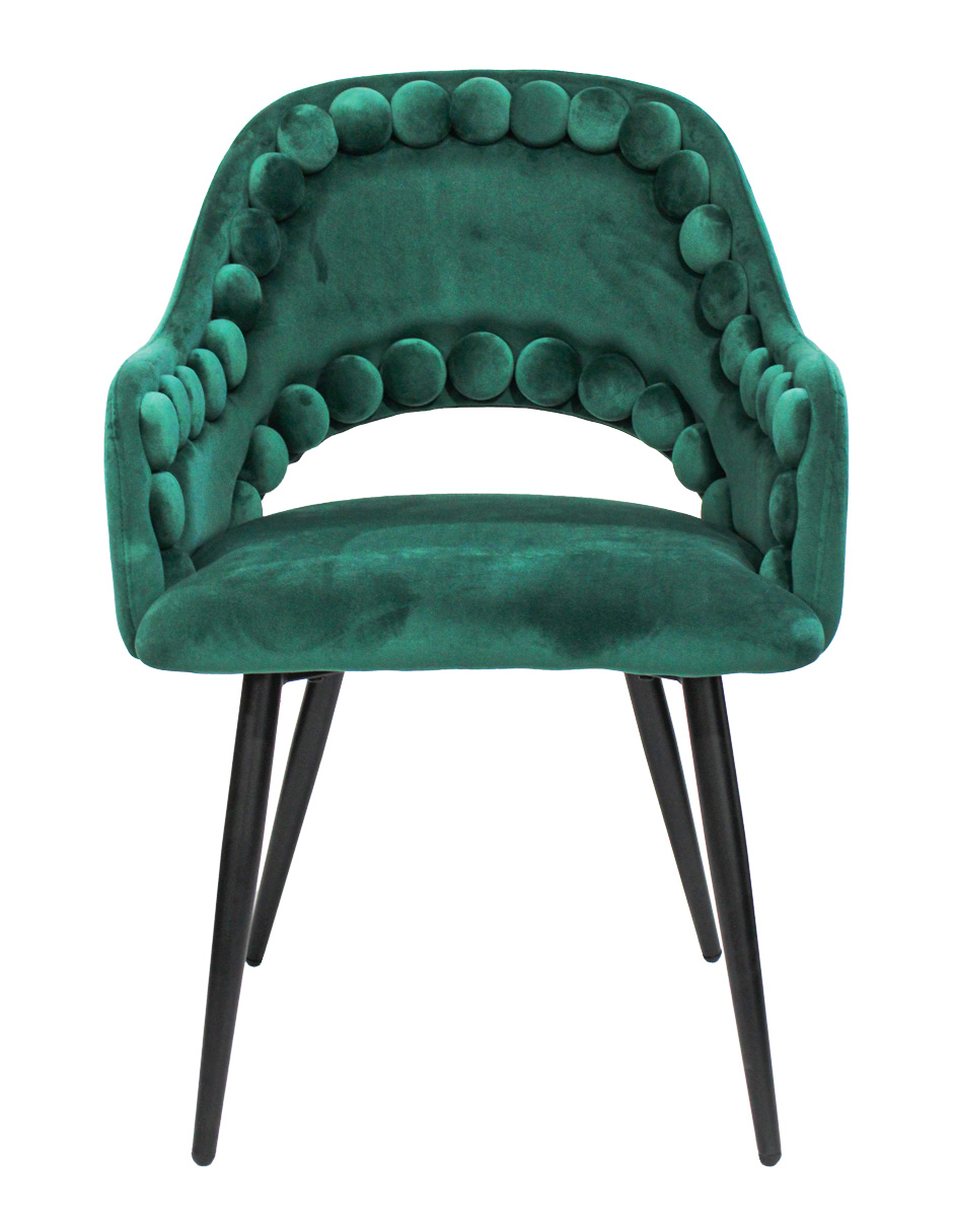 Silla de terciopelo con descansabrazos diseño bolas en la orilla verde de 53x61x82.5cm