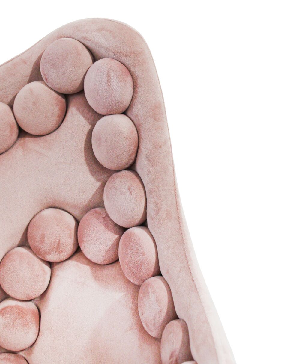 Silla de terciopelo con descansabrazos y diseño en el respaldo rosa de 54x61x86cm