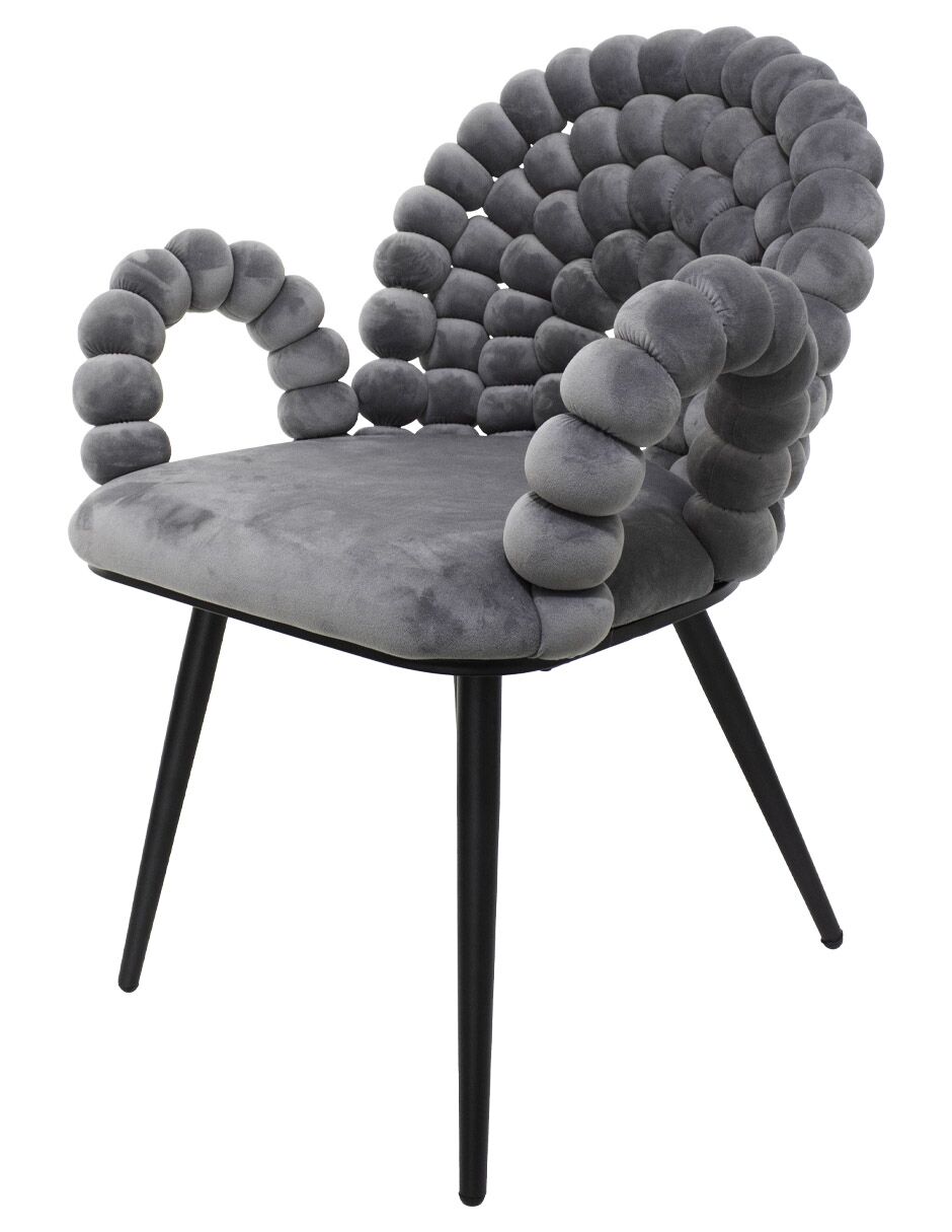 Silla de terciopelo gris oscuro diseño bolas con patas de metal de 61x58x87cm