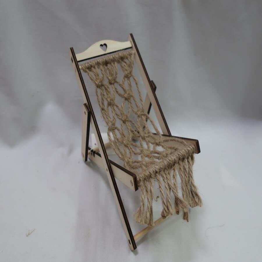 Silla de playa mini de madera con tejido natural de 24×11.5×1.3cm