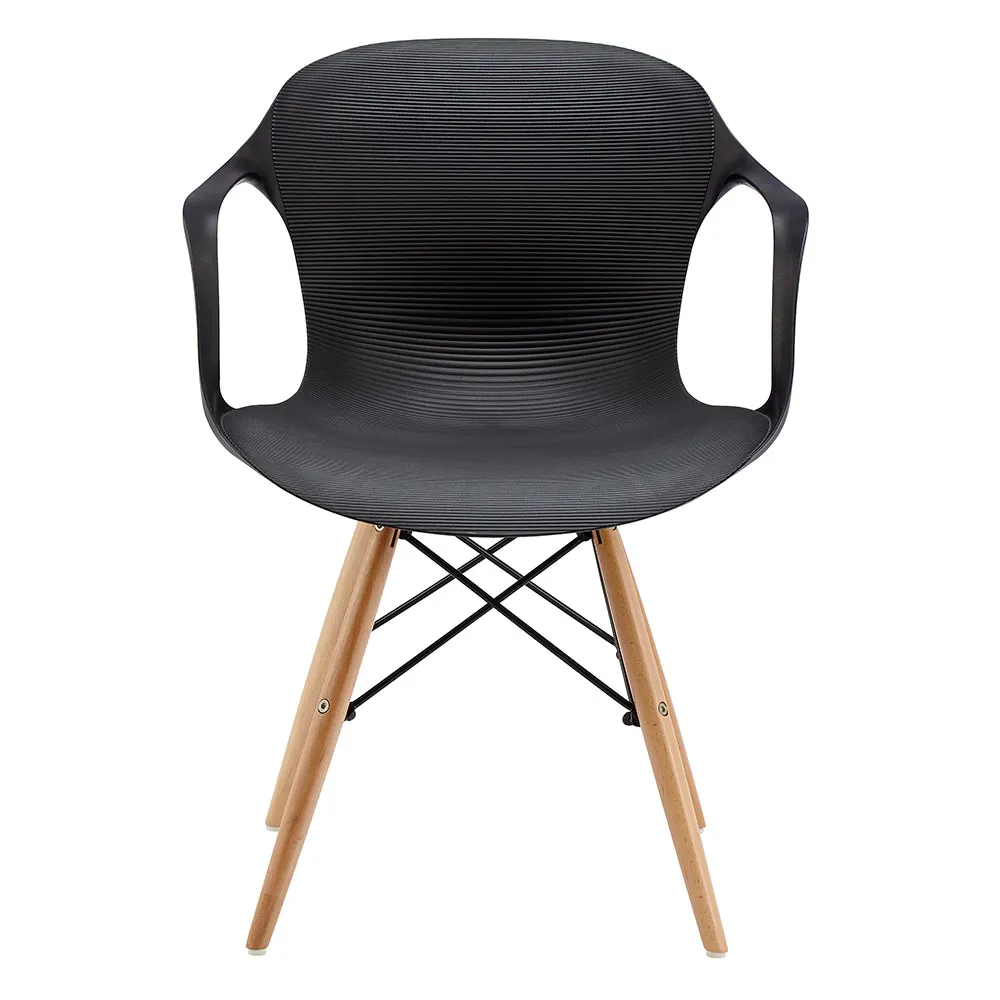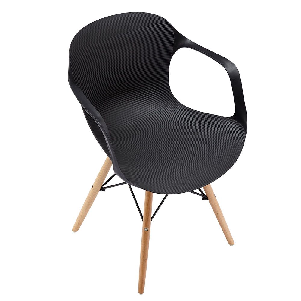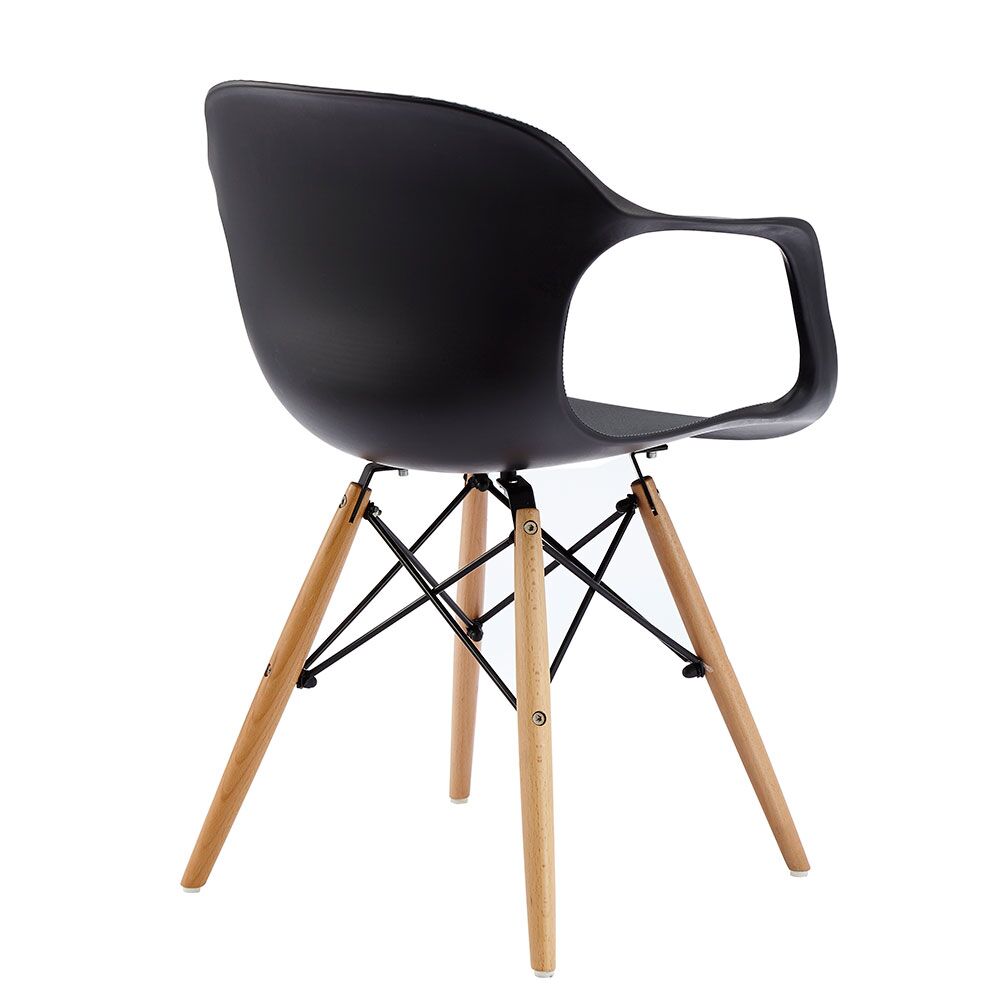 Silla c/descansabrazos de plástico negra c/patas imitación madera