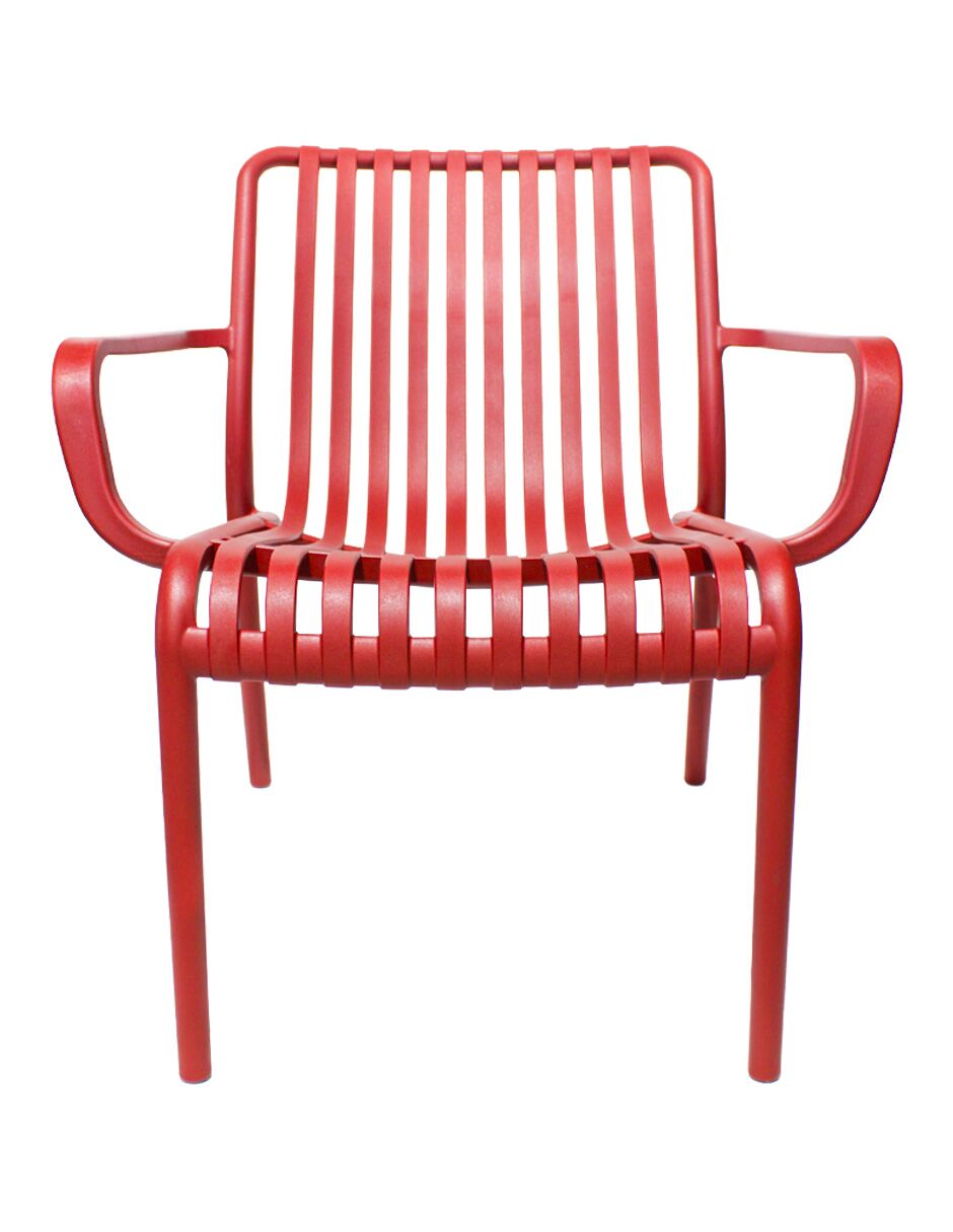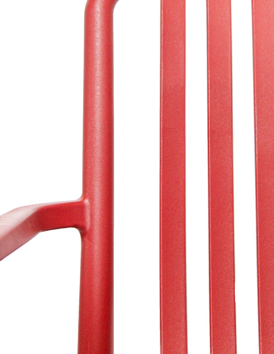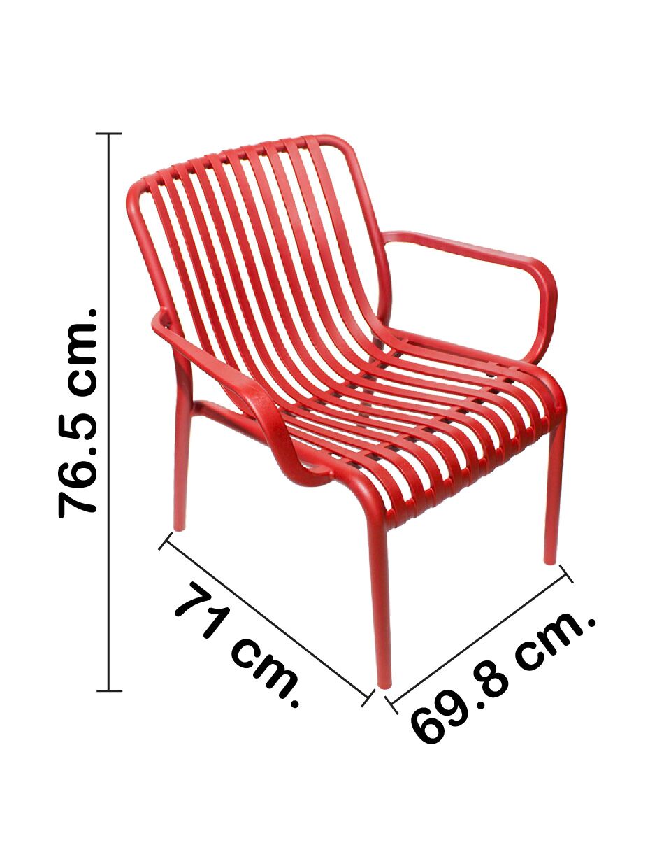 Invoca la Geometría Ortogonal y la Energía Audaz con nuestra Silla Diseño Tiras Rojo (Plástico, con Descansabrazos). Este es un objeto de profunda funcionalidad y estilo estructurado. Las líneas rectas del diseño de Tiras aportan un valor atemporal de orden y estabilidad visual, mientras que el material de Plástico la reviste de durabilidad contra la intemperie. Su diseño es un placer visual, una invitación para crear un espacio vibrante y con carácter, promoviendo la calma y el bienestar al instante.