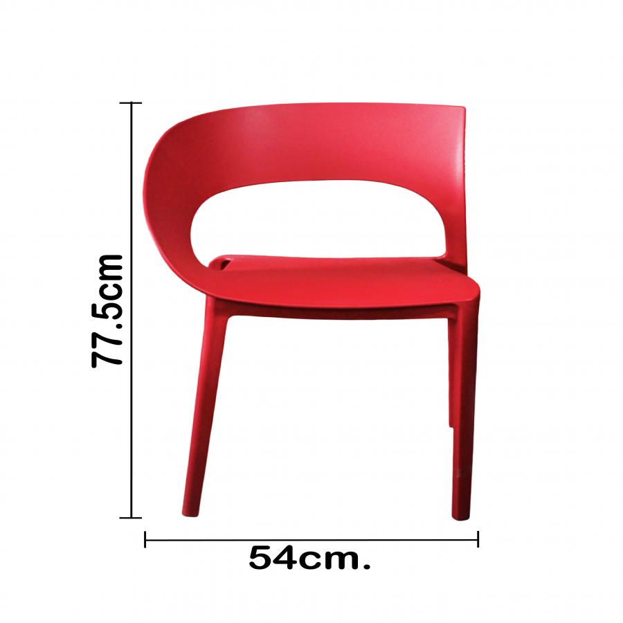 Atrae todas las miradas con la Silla Gossip. Su diseño curvado y audaz color rojo crean un punto focal vibrante en cualquier espacio. Más que una simple silla, es una declaración de estilo que desafía lo convencional. Fabricada en polipropileno de alta resistencia y con protección UV, está hecha para perdurar.