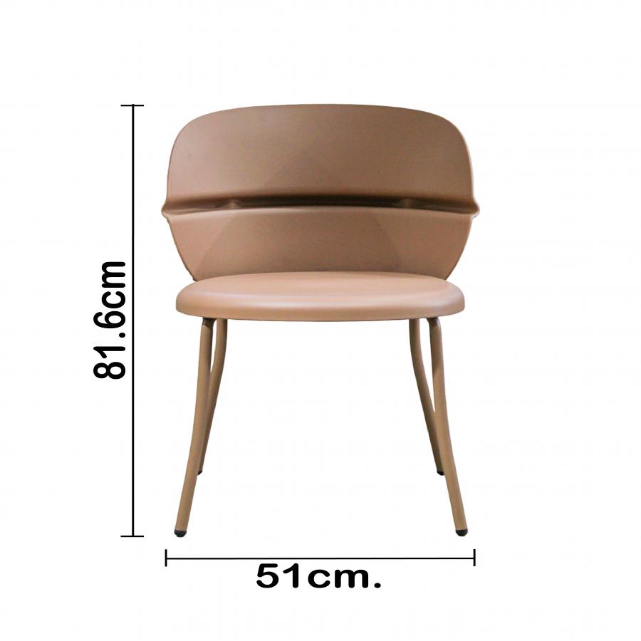 La calidez del color camel se fusiona con la sobriedad del negro. Esta silla de estilo minimalista con patas de metal negro con protección UV y electroforesis es ideal para un comedor que busca un diseño sofisticado, pero acogedor. Con sus medidas de 55x54x80cm, es la pieza perfecta para un estilo refinado.