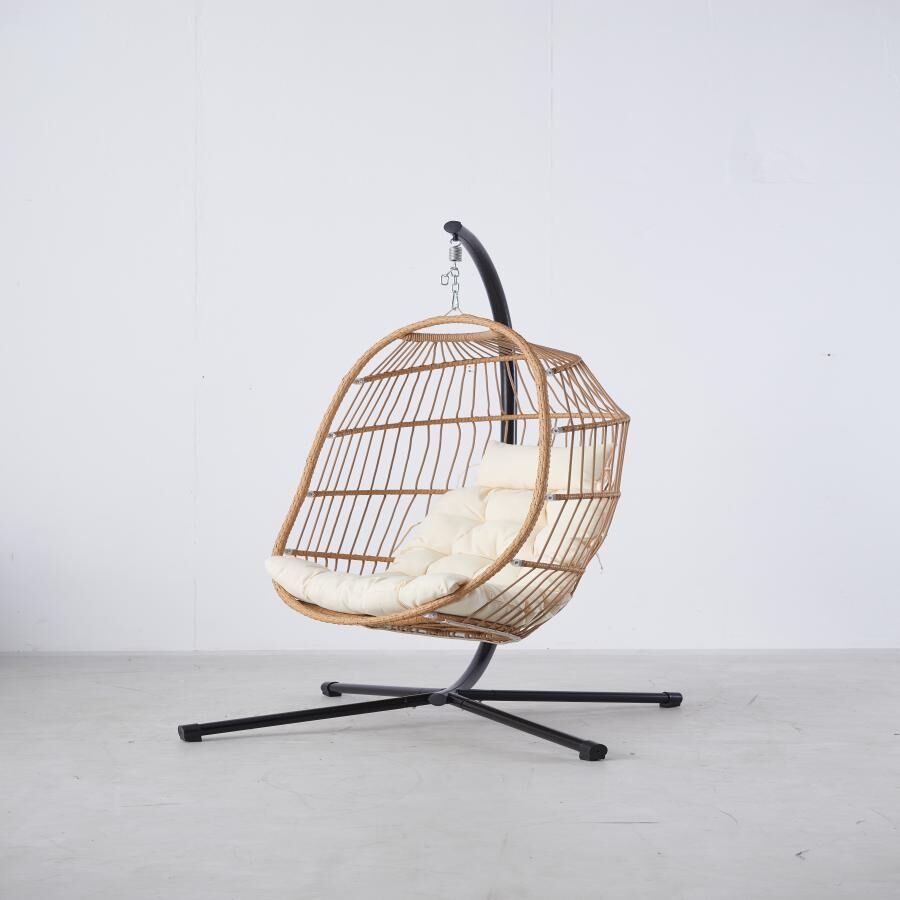 Este sillón colgante jaula de ‘Ratán’ es una pieza elegante y funcional, ideal para crear un rincón de relajación al aire libre. Su diseño tipo nido con un tejido de ratán sintético en tono natural y una robusta estructura de metal en color negro, le da un toque moderno y acogedor. Con unas dimensiones de 94x64x124cm, es perfecto para una persona y soporta un peso máximo de 100kg. Los cojines acolchados brindan un confort excepcional, invitándote a disfrutar de un momento de paz en tu terraza o jardín.